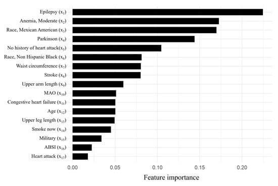 Feature importance of the top 17 variables of the optimal LASSO model.