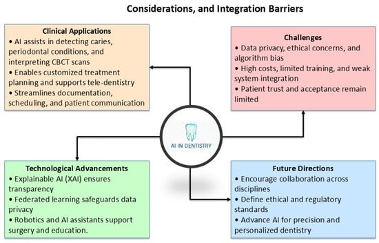 Chicago/Turabian StyleLiu, Tao-Yuan, Kun-Hua Lee, Arvind Mukundan, Riya Karmakar, Hardik Dhiman, and Hsiang-Chen Wang. 2025. "AI in Dentistry: Innovations, Ethical Considerations, and Integration Barriers" Bioengineering 12, no. 9: 928. https://doi.org/10.3390/bioengineering12090928