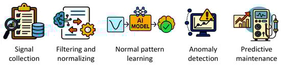 Research workflow for predictive maintenance of dialysis machine sensors, from data collection to AI-based anomaly detection and early-warning support.