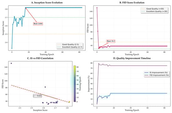 - Salimans, T.; Goodfellow, I.; Zaremba, W.; Cheung, V.; Radford, A.; Chen, X.; Chen, X. Improved Techniques for Training GANs. In Advances in Neural Information Processing Systems; Lee, D., Sugiyama, M., Luxburg, U., Guyon, I., Garnett, R., Eds.; Curran Associates, Inc.: Red Hook, NY, USA, 2016; Volume 29. [Google Scholar]