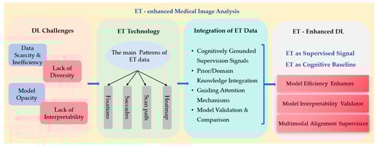 Duan, J.; Zhang, M.; Song, M.; Xu, X.; Lu, H. Eye Tracking-Enhanced Deep Learning for Medical Image Analysis: A Systematic Review on Data Efficiency, Interpretability, and Multimodal Integration. Bioengineering 2025, 12, 954. https://doi.org/10.3390/bioengineering12090954