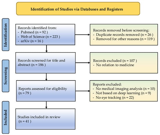 APA StyleDuan, J., Zhang, M., Song, M., Xu, X., & Lu, H. (2025). Eye Tracking-Enhanced Deep Learning for Medical Image Analysis: A Systematic Review on Data Efficiency, Interpretability, and Multimodal Integration. Bioengineering, 12(9), 954. https://doi.org/10.3390/bioengineering12090954