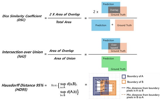 - Taha, A.A.; Hanbury, A. Metrics for evaluating 3D medical image segmentation: Analysis, selection, and tool. BMC Med. Imaging 2015, 15, 29. [Google Scholar] [CrossRef]