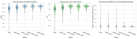 - Sengupta, S.; Chakrabarty, S.; Soni, R. Is SAM 2 better than SAM in medical image segmentation? In Proceedings of the Medical Imaging 2025: Image Processing, San Diego, CA, USA, 17–20 February 2025; pp. 666–672. [Google Scholar]