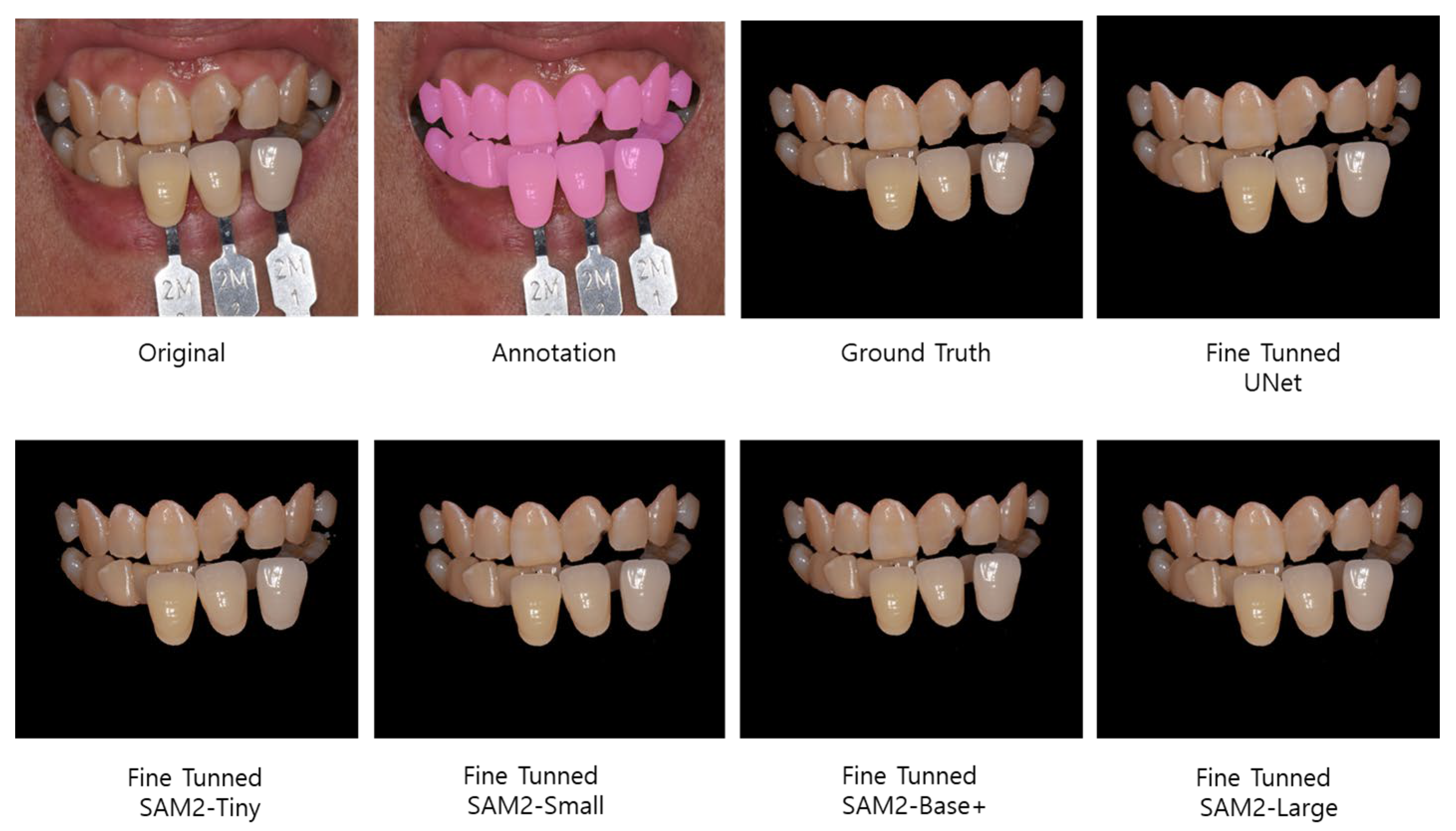 Han K, Lim J, Ahn J-S, Lee K-S. The Evaluation of a Deep Learning Approach to Automatic Segmentation of Teeth and Shade Guides for Tooth Shade Matching Using the SAM2 Algorithm. Bioengineering. 2025; 12(9):959. https://doi.org/10.3390/bioengineering12090959