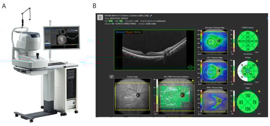 - Laíns, I.; Wang, J.C.; Cui, Y.; Katz, R.; Vingopoulos, F.; Staurenghi, G.; Vavvas, D.G.; Miller, J.W.; Miller, J.B. Retinal applications of swept source optical coherence tomography (OCT) and optical coherence tomography angiography (OCTA). Prog. Retin. Eye Res. 2021, 84, 100951. [Google Scholar] [CrossRef]