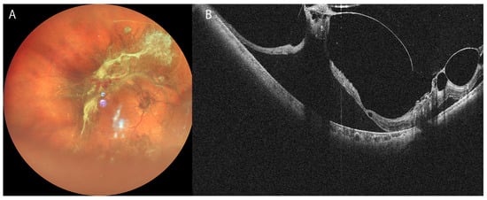- Takahashi, H.; Uramoto, K.; Ohno-Matsui, K. Ultra-Widefield Optical Coherence Tomography For Retinal Detachment With Proliferative Vitreoretinopathy. Retin. Cases Brief. Rep. 2022, 16, 355–359. [Google Scholar] [CrossRef] [PubMed]