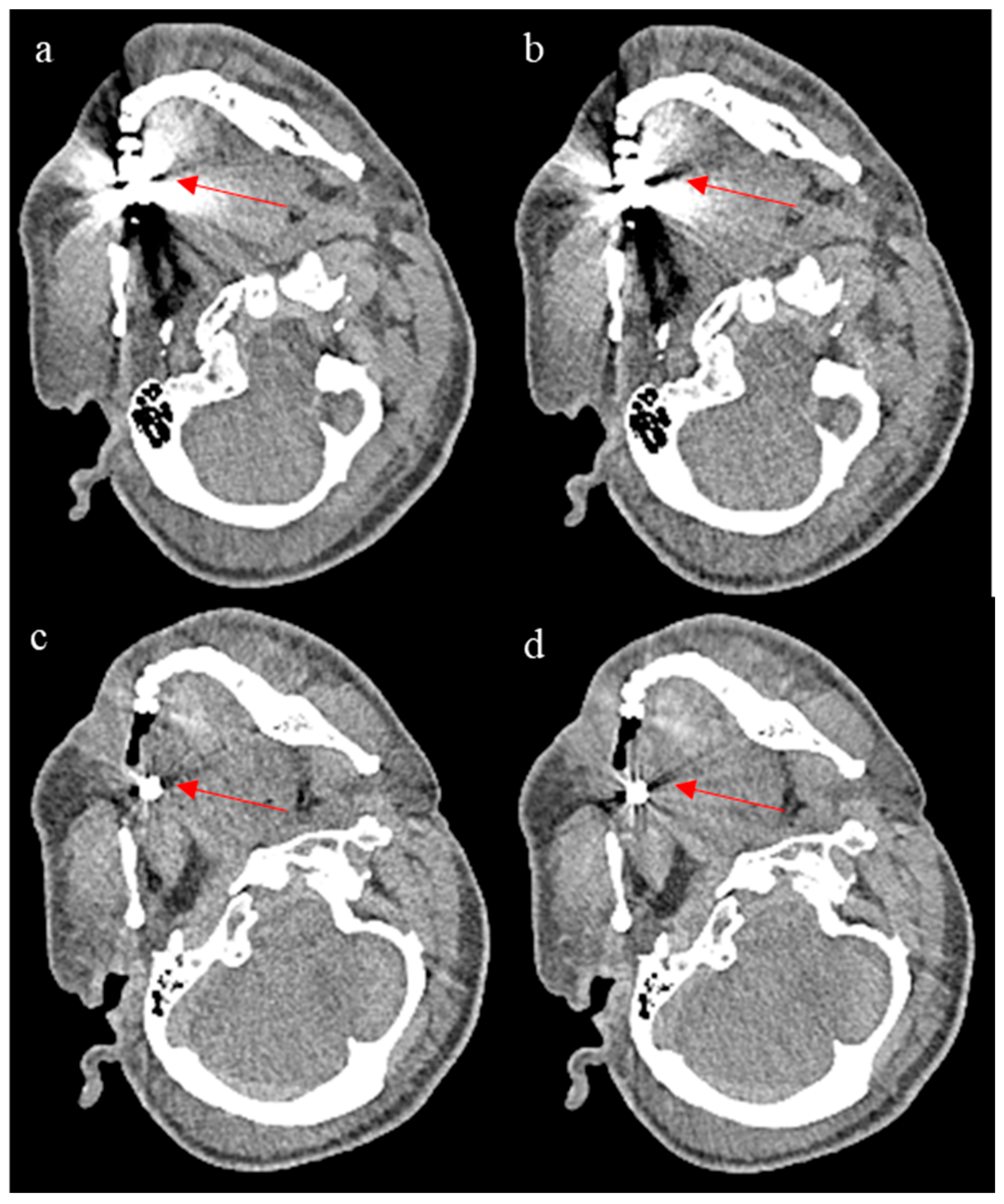 - Mohammadinejad, P.; Mileto, A.; Yu, L.; Leng, S.; Guimaraes, L.S.; Missert, A.D.; Jensen, C.T.; Gong, H.; McCollough, C.H.; Fletcher, J.G. CT noise-reduction methods for lower-dose scanning: Strengths and weaknesses of iterative reconstruction algorithms and new techniques. Radiographics 2021, 41, 1493–1508. [Google Scholar] [CrossRef] [PubMed]