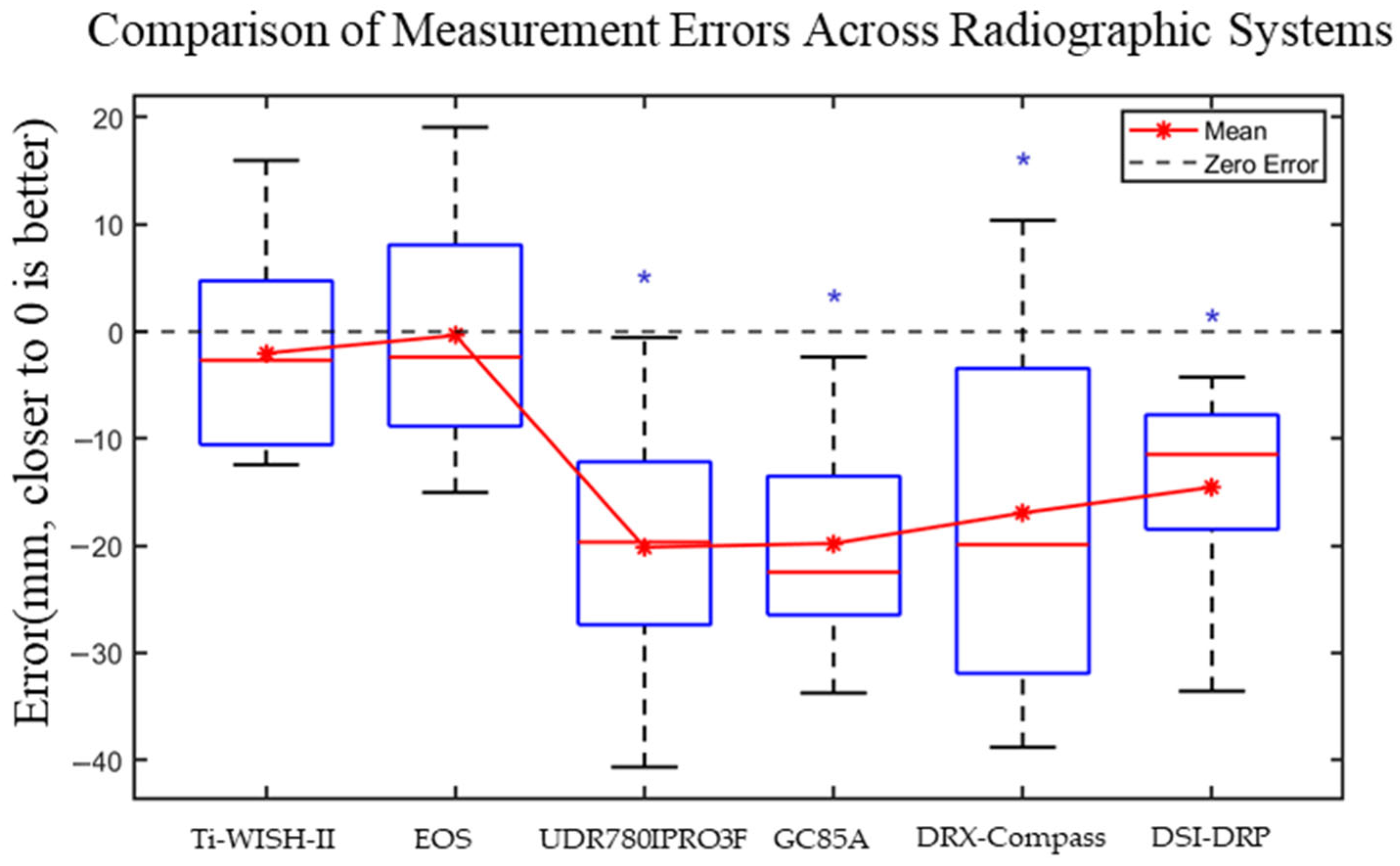 3.4.1. Significance of Measurement Errors Across Radiographic Systems