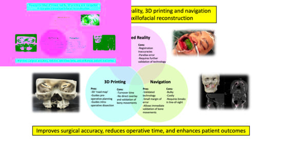 - Ghai, S.; Sharma, Y.; Jain, N.; Satpathy, M.; Pillai, A.K. Use of 3-D Printing Technologies in Craniomaxillofacial Surgery: A Review. Oral Maxillofac. Surg. 2018, 22, 249–259. [Google Scholar] [CrossRef] [PubMed]
