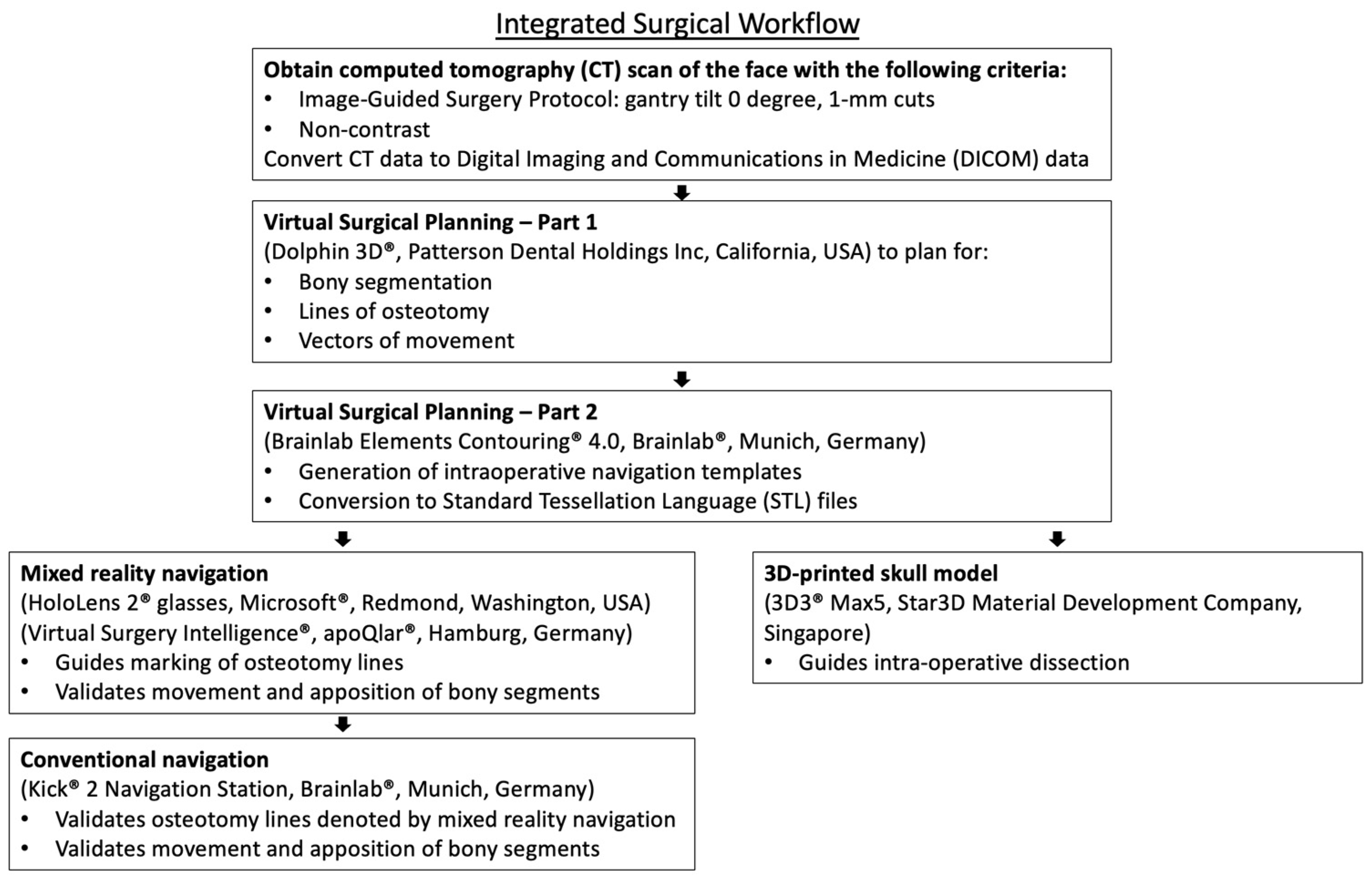 - Cai, E.Z.; Yee, T.H.; Gao, Y.; Lu, W.W.; Lim, T.C. Mixed Reality Guided Advancement Osteotomies in Congenital Craniofacial Malformations. J. Plast. Reconstr. Aesthet. Surg. 2024, 98, 100–102. [Google Scholar] [CrossRef]