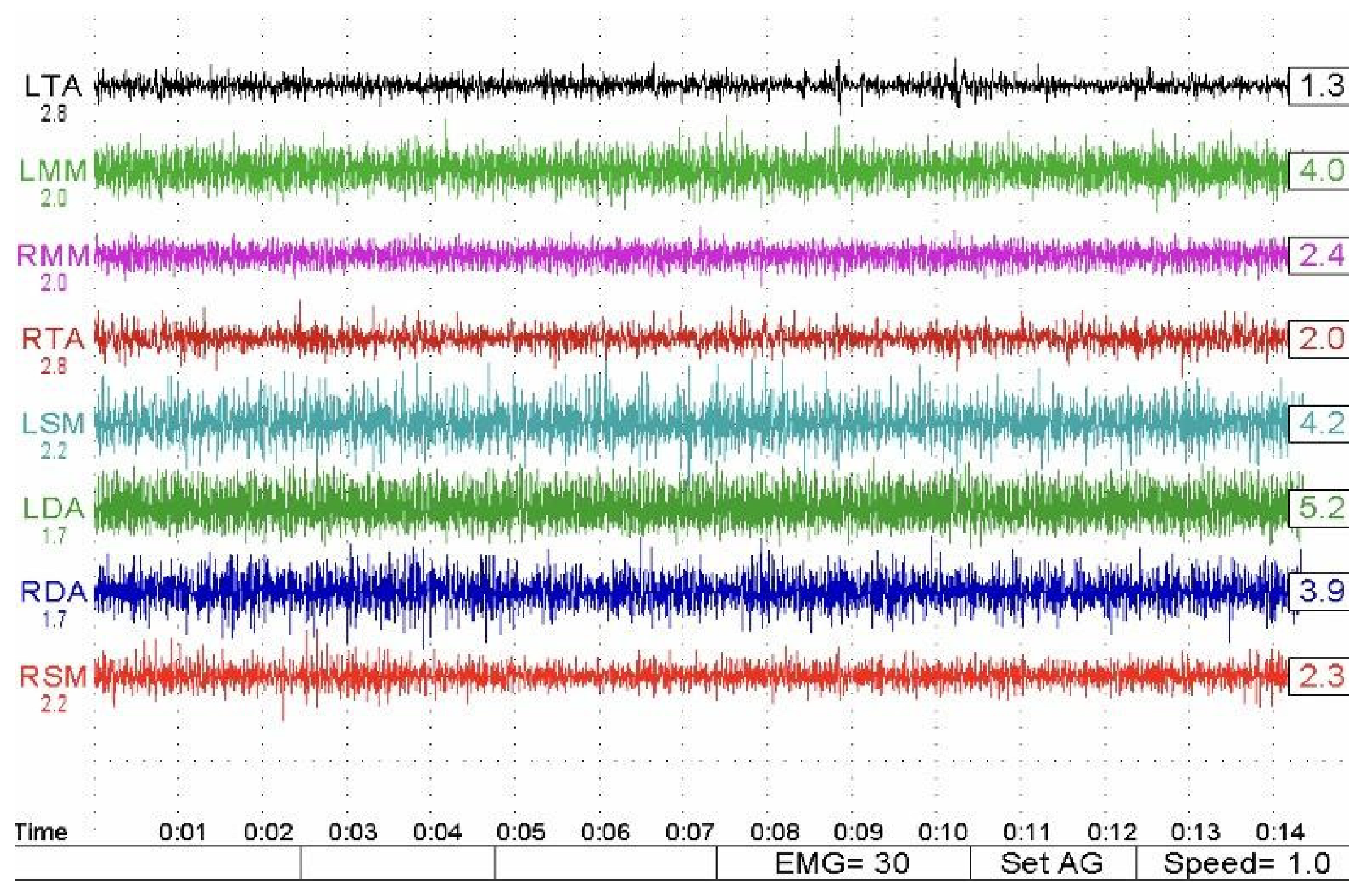 The two different electromyographic systems were used in a complementary and standardized manner, according to their technical specifications (