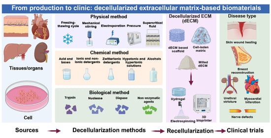 Chicago/Turabian StyleYang, Haochen, Jiesheng Xia, Yuyue Qian, Xiaosong Gu, and Meng Cong. 2026. "From Production to the Clinic: Decellularized Extracellular Matrix as a Biomaterial for Tissue Engineering and Regenerative Medicine" Bioengineering 13, no. 1: 24. https://doi.org/10.3390/bioengineering13010024