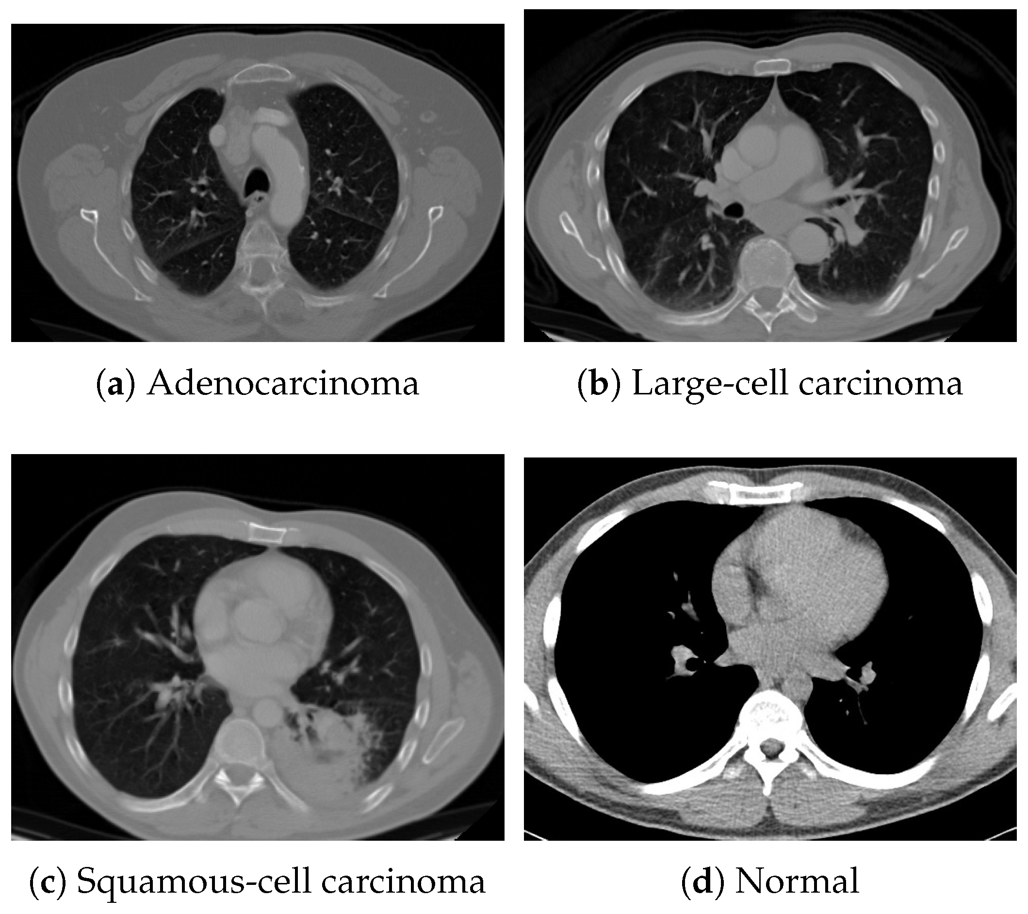 - Tasai, R.; Li, G.; Togo, R.; Tang, M.; Yoshimura, T.; Sugimori, H.; Hirata, K.; Ogawa, T.; Kudo, K.; Haseyama, M. Lung cancer classification using masked autoencoder pretrained on J-MID database. In Proceedings of the IEEE Global Conference on Consumer Electronics (GCCE), Kitakyushu, Japan, 29 October–1 November 2024; pp. 456–457. [Google Scholar]