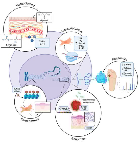 Multi-omics, which integrates single-omic technologies, provides a comprehensive view of cellular processes and the diverse factors shaping cell behavior. By combining multiple-omic layers, such as genomics, transcriptomics, epigenetics, proteomics, metabolomics, and spatial transcriptomics, causal relationships among molecular components may be better understood. These integrative methods have significantly advanced our ability to dissect complex diseases and biological processes, offering a holistic perspective on molecular changes during tissue repair and providing deeper insights into the underlying mechanisms driving disparate healing outcomes [5].
