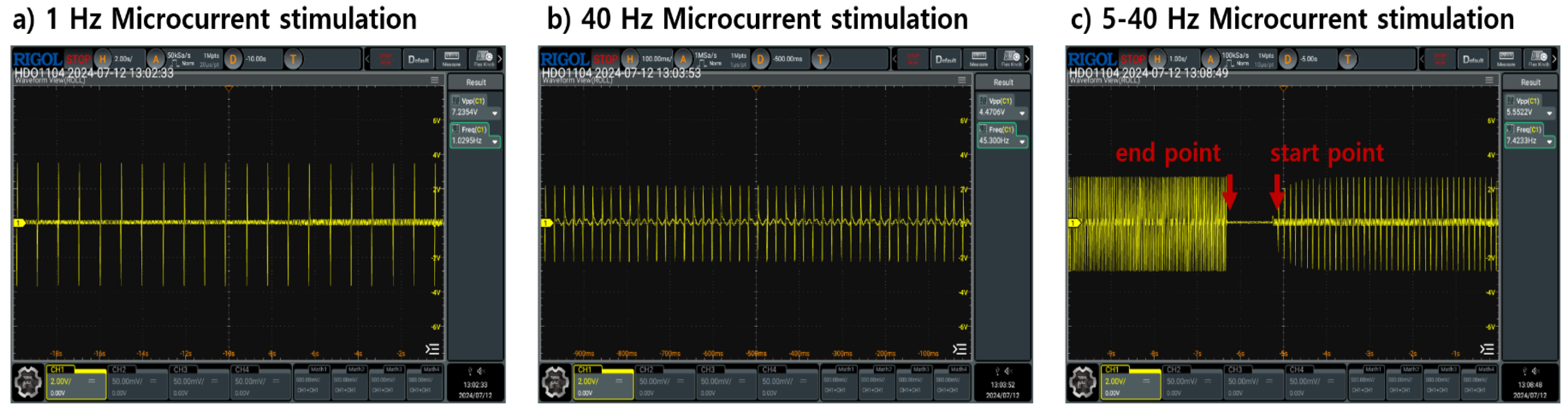 | Hz | Vpp | Before Stimulus | Stimulus 0–2 min Interval | Stimulus 4–6 min Interval | Stimulus 8–10 min Interval | End of Stimulus |