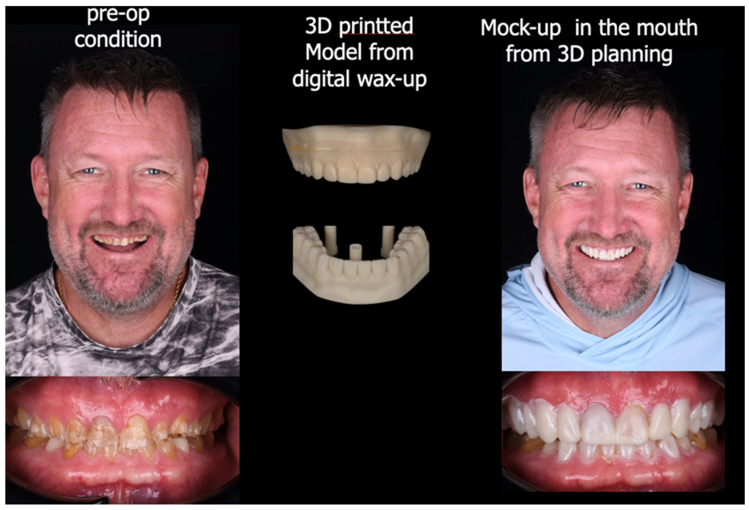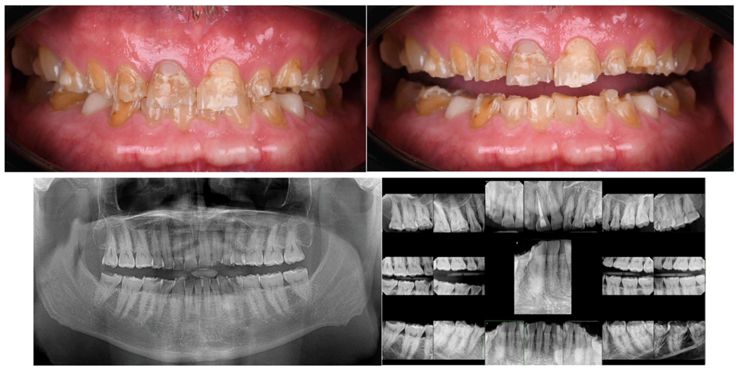 - Garaicoa, J.; Jurado, C.A.; Afrashtehfar, K.I.; Alhotan, A.; Fischer, N.G. Digital Full-Mouth Reconstruction Assisted by Facial and Intraoral Scanners: A Case Report and Technique Description. Appl. Sci. 2023, 13, 1917. [Google Scholar] [CrossRef]