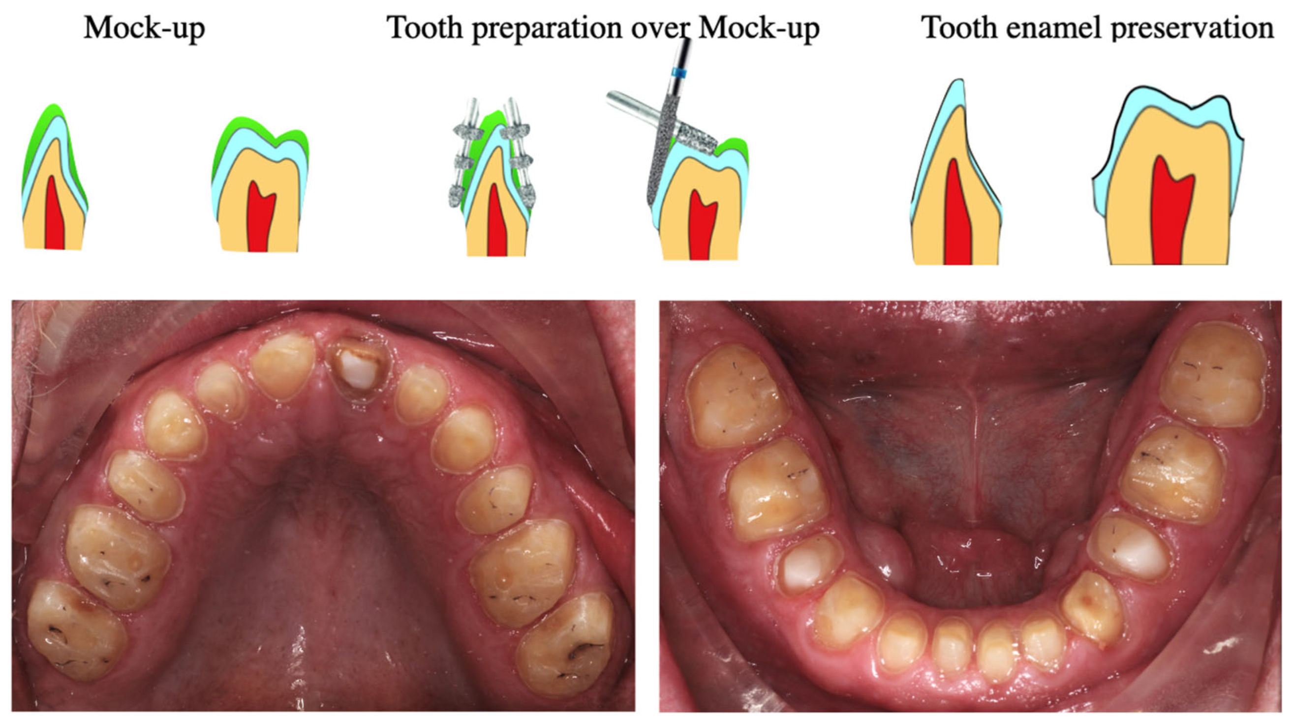 - Loomans, B.; Opdam, N.; Attin, T.; Bartlett, D.; Edelhoff, D.; Frankenberger, R.; Benic, G.; Ramseyer, S.; Wetselaar, P.; Sterenborg, B.; et al. Severe Tooth Wear: European Consensus Statement on Management Guidelines. J. Adhes. Dent. 2017, 19, 111–119. [Google Scholar] [PubMed]