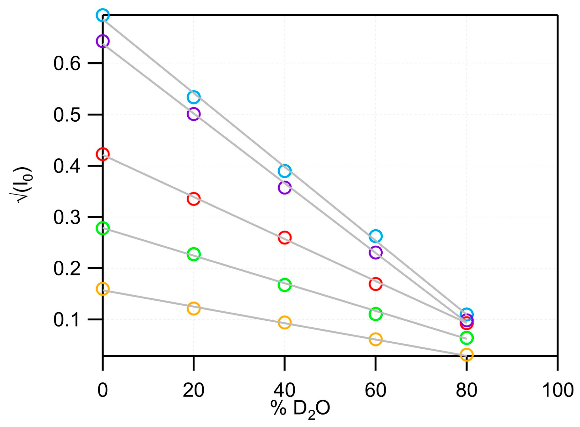 - Golub, M.; Gätcke, J.; Subramanian, S.; Kölsch, A.; Darwish, T.; Howard, J.K.; Feoktystov, A.; Matsarskaia, O.; Martel, A.; Porcar, L.; et al. “Invisible” Detergents Enable a Reliable Determination of Solution Structures of Native Photosystems by Small-Angle Neutron Scattering. J. Phys. Chem. B 2022, 126, 2824–2833. [Google Scholar] [CrossRef]