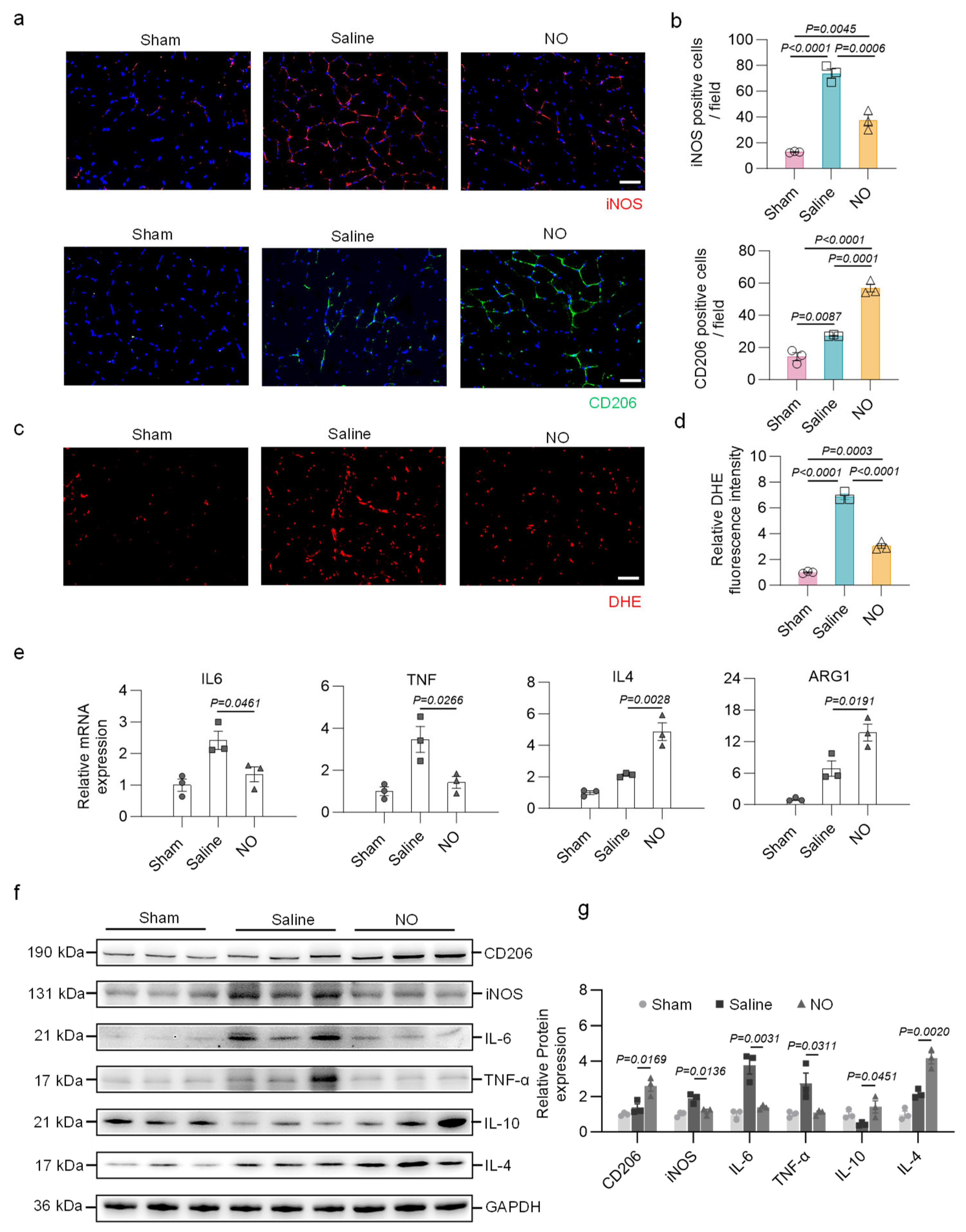 3.5. Targeted Delivery of NO Modulates the Inflammatory Response and Suppresses Oxidative Stress
