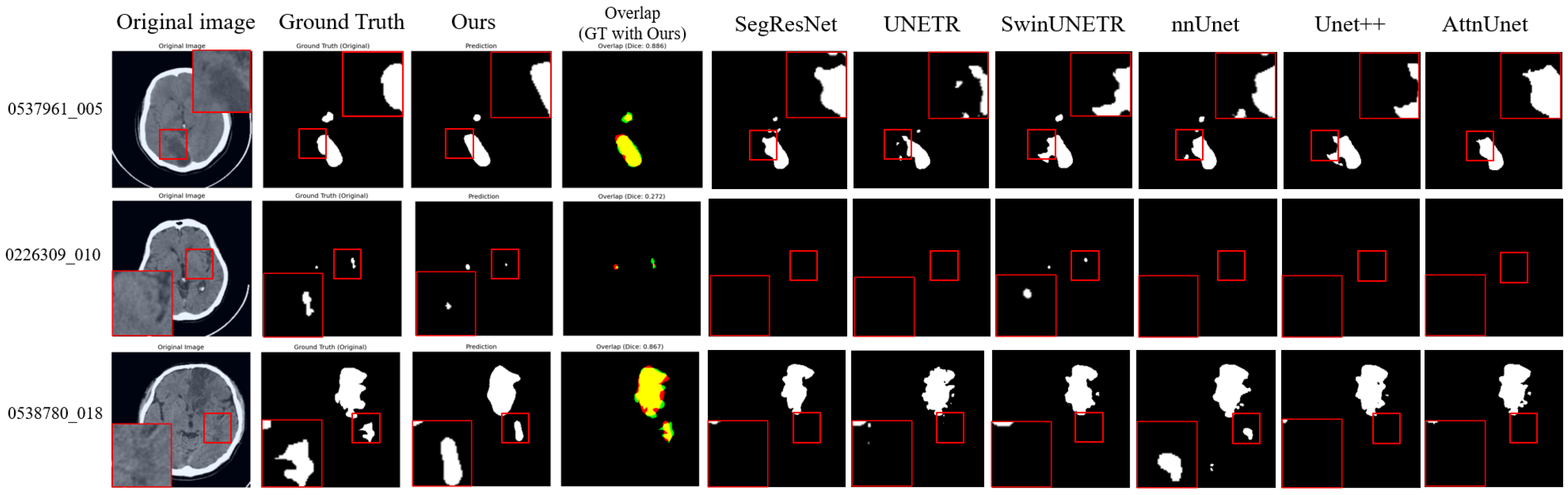 - Liang, K.; Han, K.; Li, X.; Cheng, X.; Li, Y.; Wang, Y.; Yu, Y. Symmetry-Enhanced Attention Network for Acute Ischemic Infarct Segmentation with Non-Contrast CT Images. In Proceedings of the MICCAI 2021, Strasbourg, France, 27 September–1 October 2021. [Google Scholar]