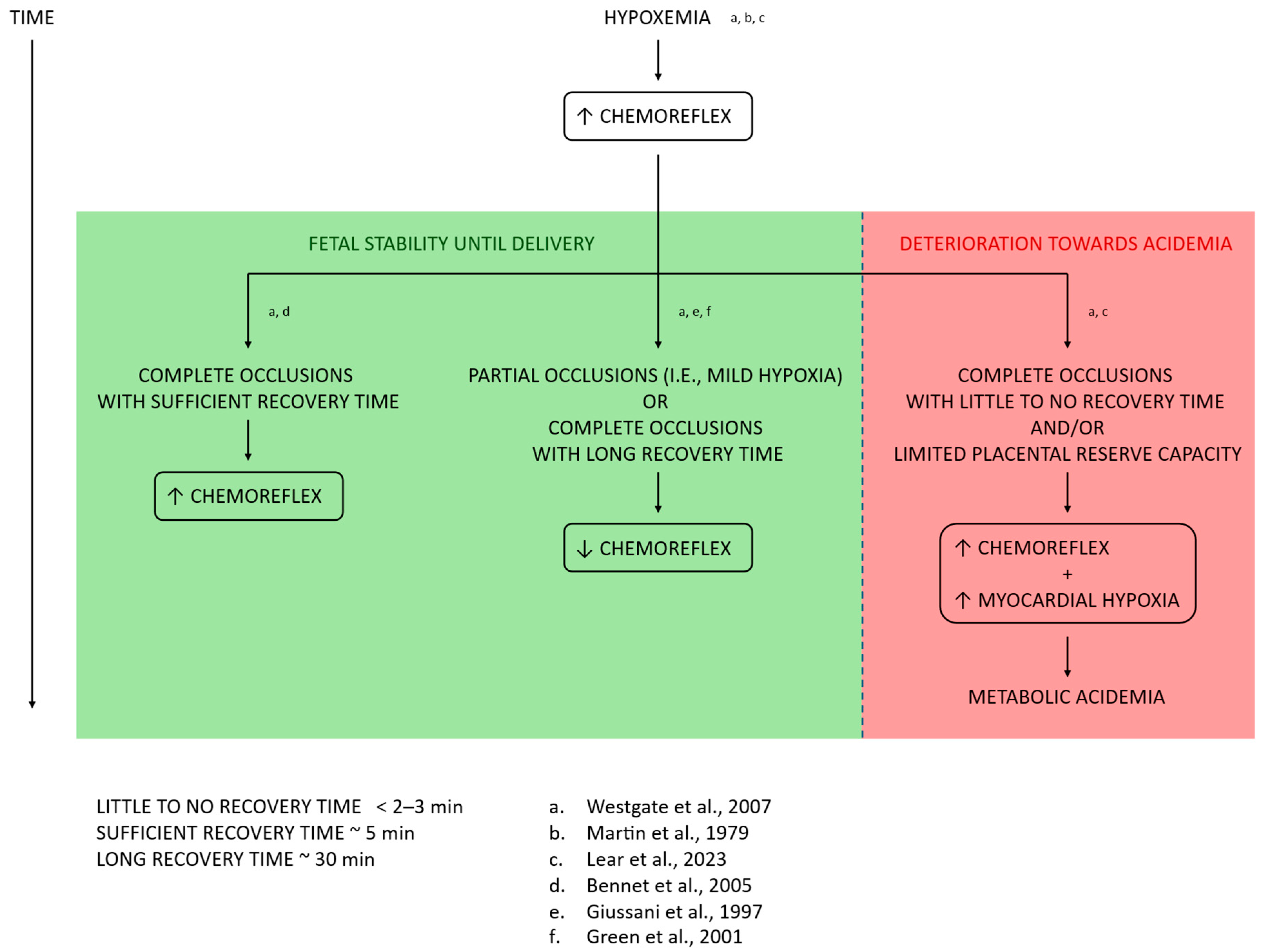 - Lear, C.A.; Beacom, M.J.; Dhillon, S.K.; Lear, B.A.; Mills, O.J.; Gunning, M.I.; Westgate, J.A.; Bennet, L.; Gunn, A.J. Dissecting the Contributions of the Peripheral Chemoreflex and Myocardial Hypoxia to Fetal Heart Rate Decelerations in Near-Term Fetal Sheep. J. Physiol. 2023, 601, 2017–2041. [Google Scholar] [CrossRef] [PubMed]