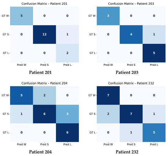 (2) Biomarker classification. For biomarker classification experiments, OCT B-scans from both the TREX DME (47 patients) and Prime_FULL (40 patients) cohorts were used. In this setting, only the first and last visits per eye were considered, as expert biomarker annotations are available exclusively at these timepoints. Classification was performed at the slice level using individual B-scans with corresponding biomarker labels. Classification performance is reported in Table 6.