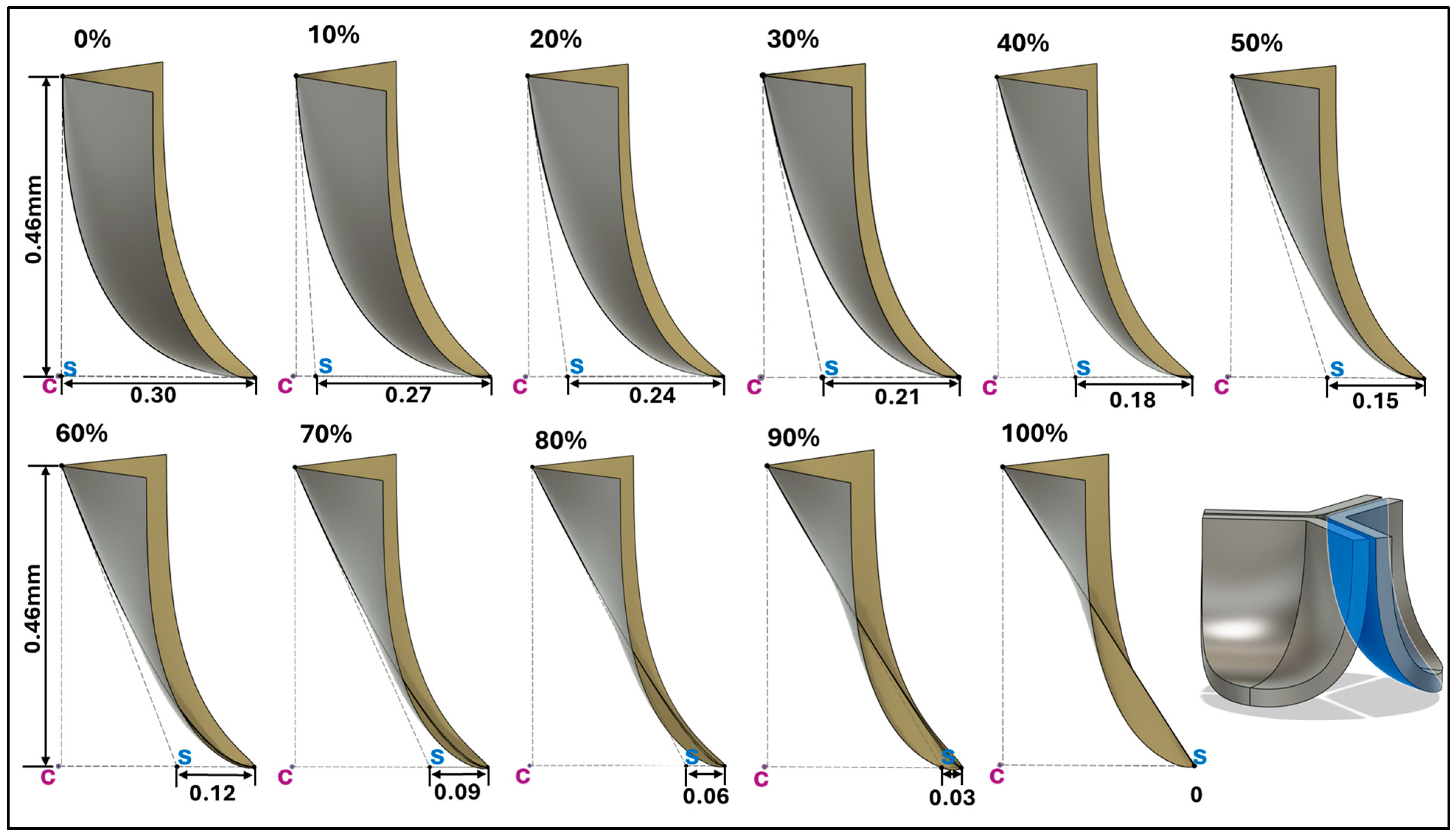 - Sebastian, K.; Sylvia, P.; Stefan, S.; Pfensig, S.; Siewert, S.; Schmitz, K.; Stiehm, M.; Stefanie, K.; Niels, G.; Alper, Ö. Influence of leaflet geometry on hydrodynamic performance of transcatheter aortic valve prostheses. Current Dir. Biomed. Eng. 2019, 5, 473–475. [Google Scholar] [CrossRef]