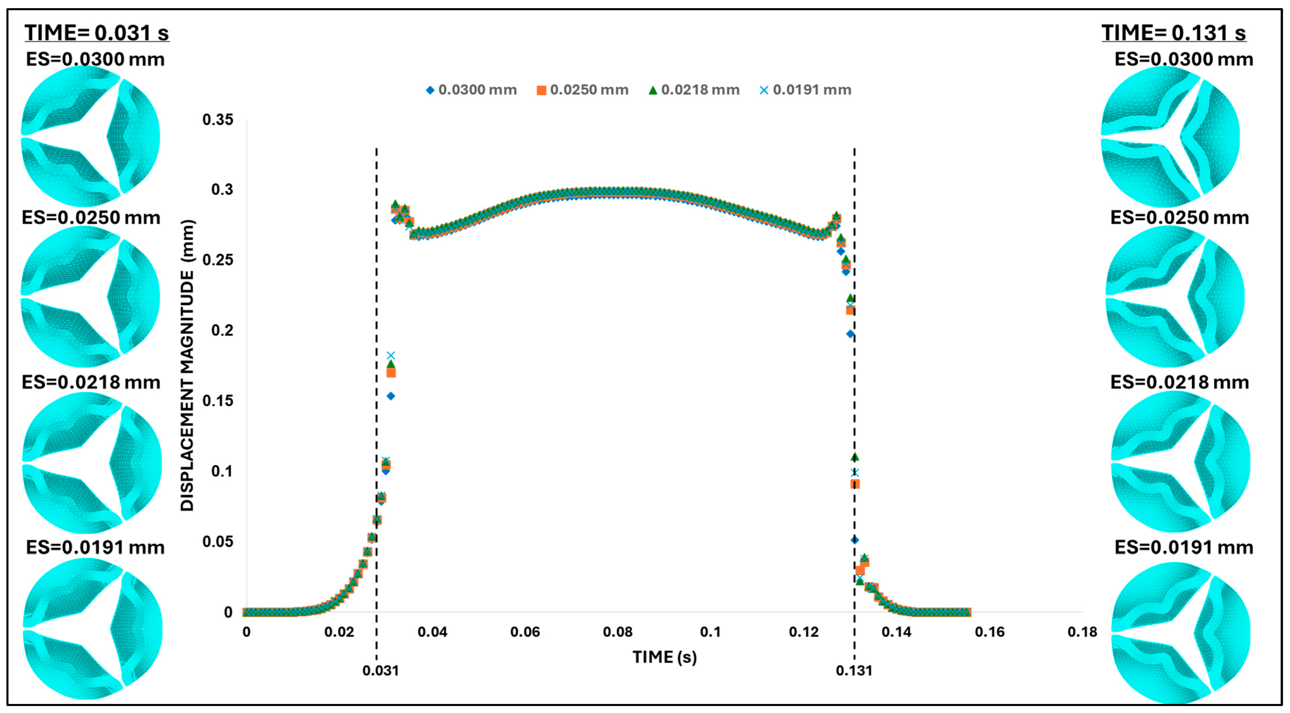 - Bialas, O.; Zmudzki, J. Fea of displacements and stresses of aortic heart valve leaflets during the opening phase. J. Achiev. Mater. Manuf. Eng. 2019, 92, 29–35. [Google Scholar] [CrossRef]