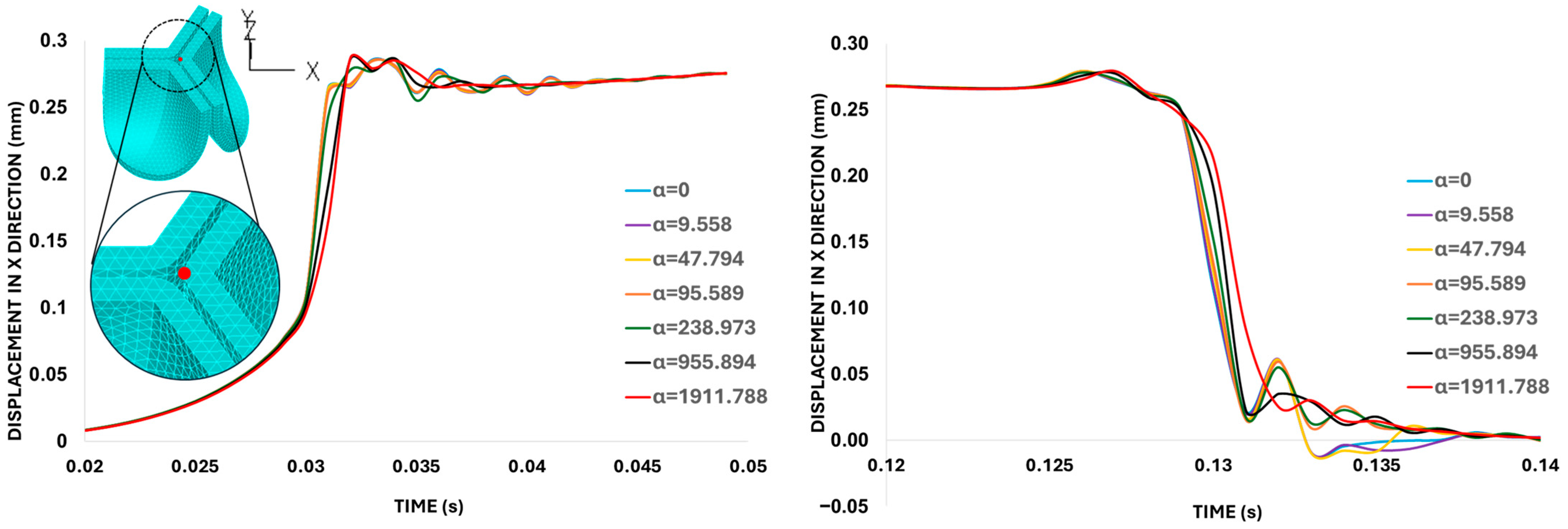 - Dassault Systèmes. ABAQUS 6.6 Documentation: Effects of Damping on the Stable Time Increment in ABAQUS/Explicit. Section 20.1.1. 2023. Available online: https://classes.engineering.wustl.edu/2009/spring/mase5513/abaqus/docs/v6.6/books/usb/default.htm?startat=pt05ch20s01abm43.html (accessed on 18 August 2025).