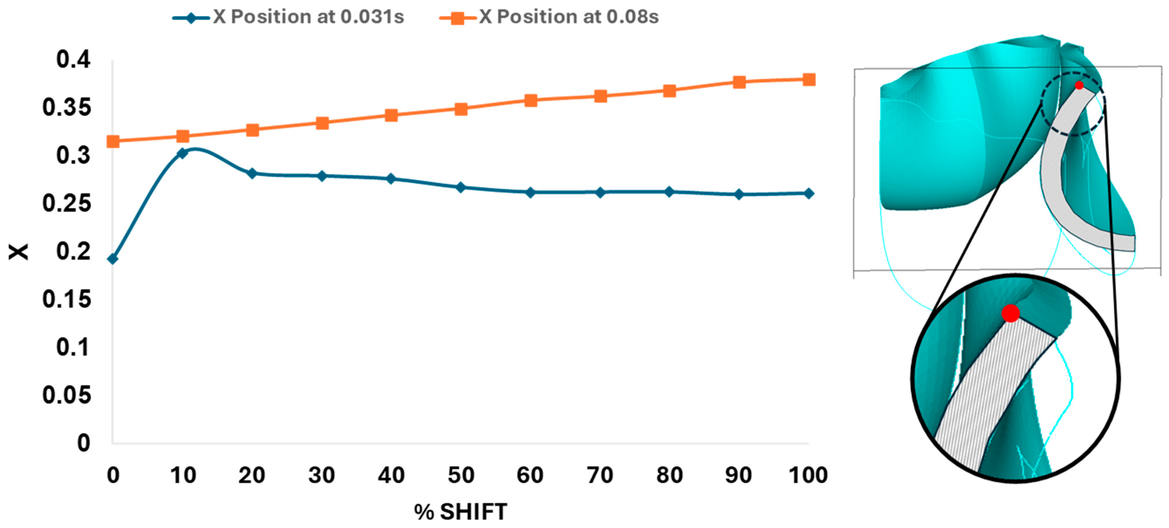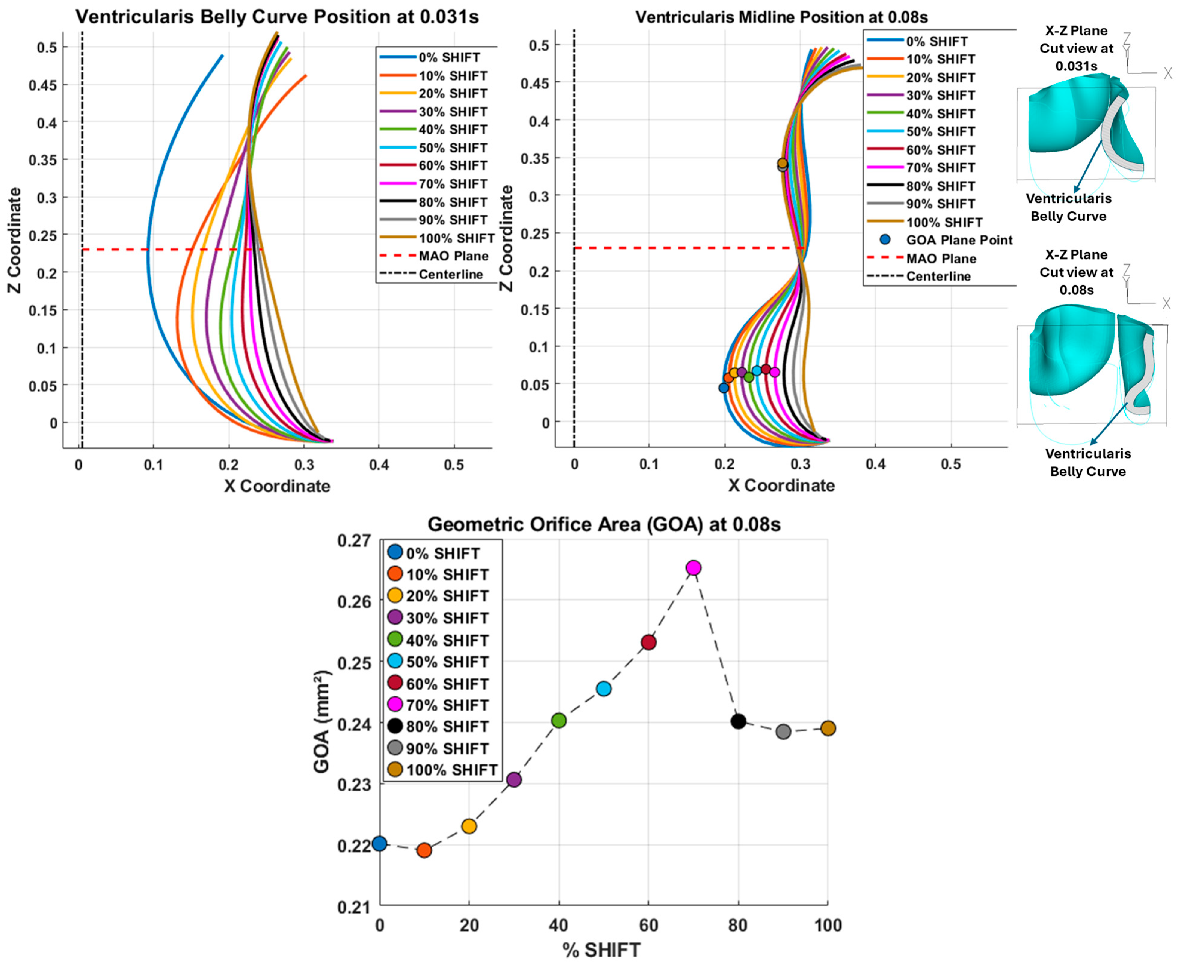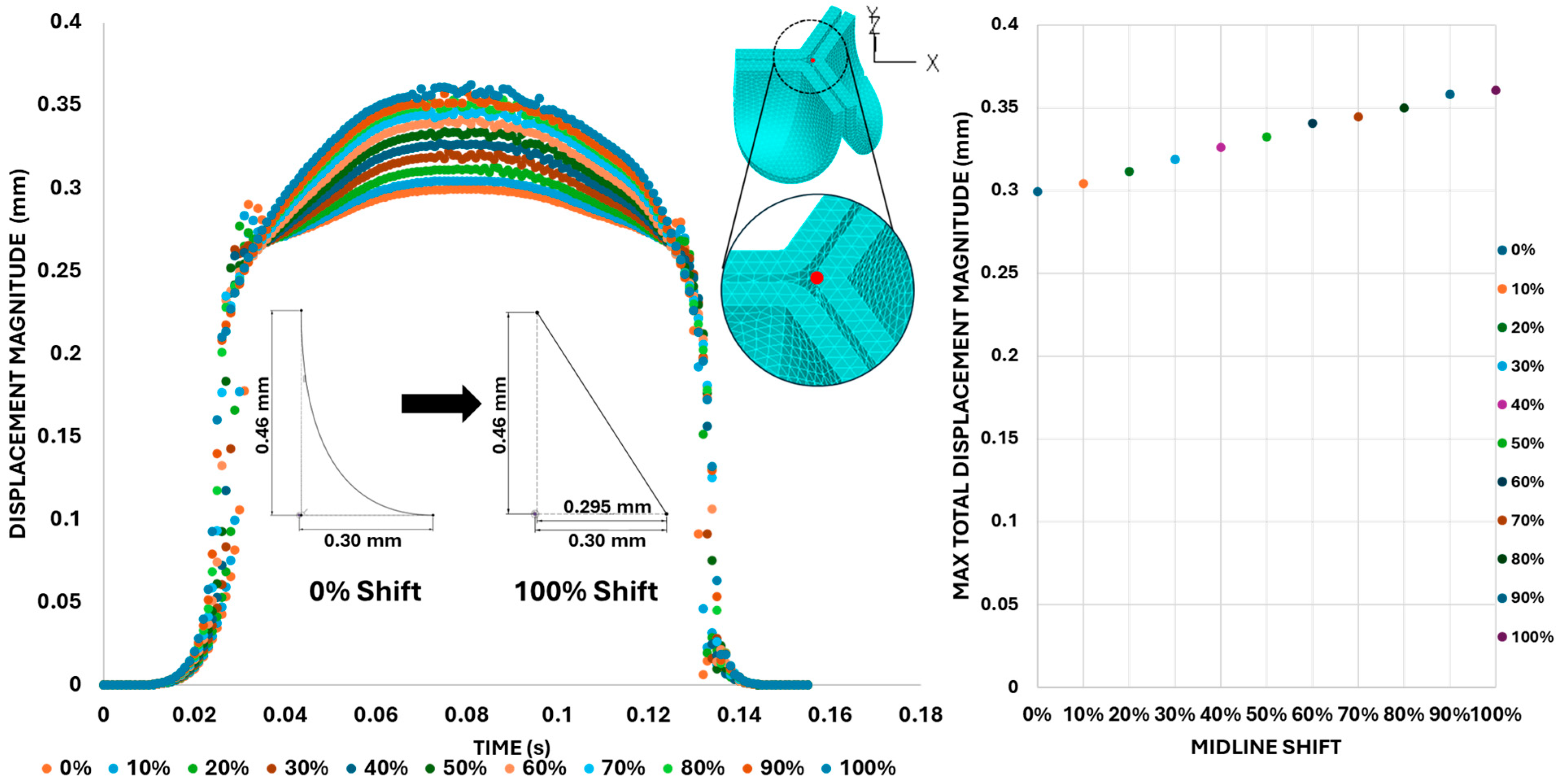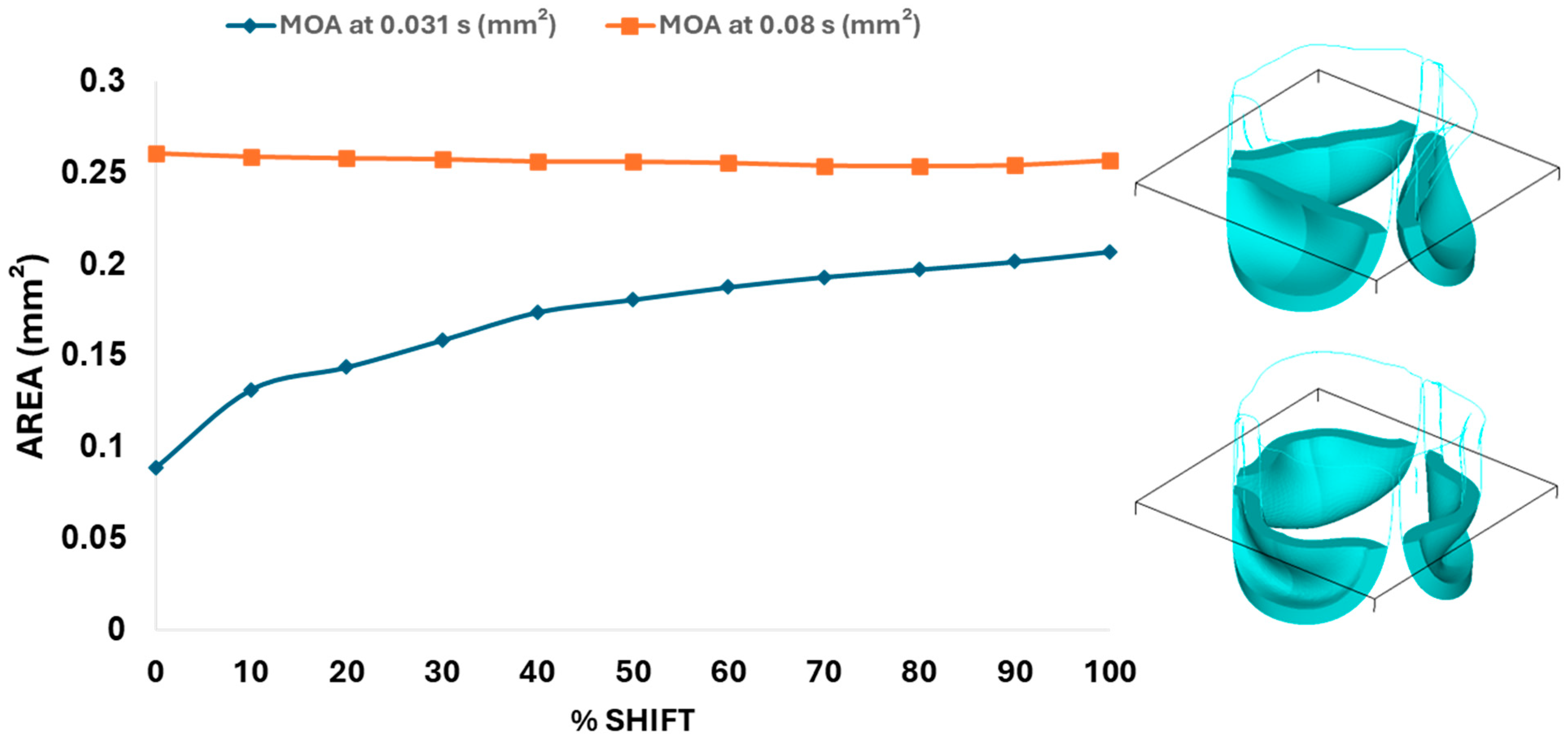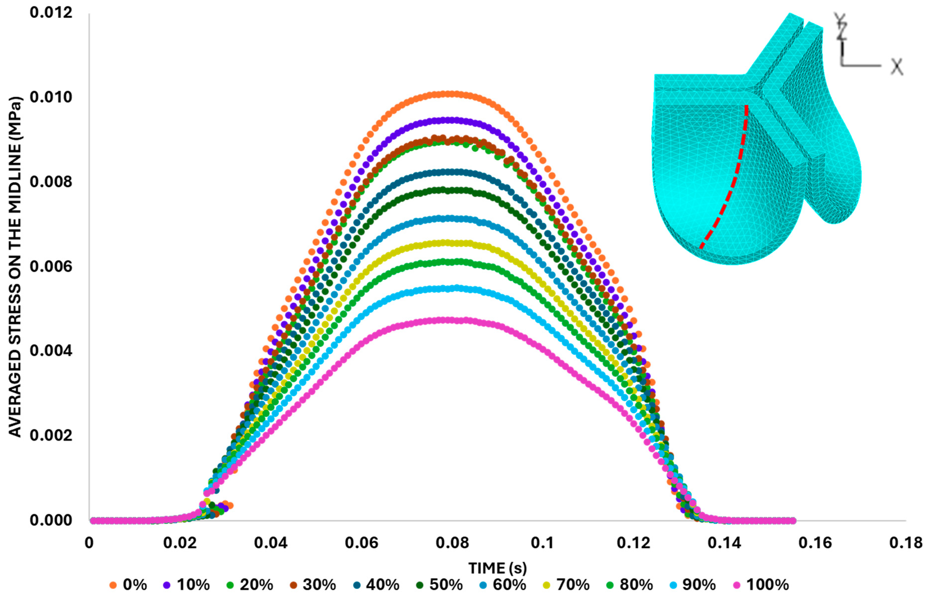 4.5. Effect of Leaflet Midline Curve on Valve Biomechanics