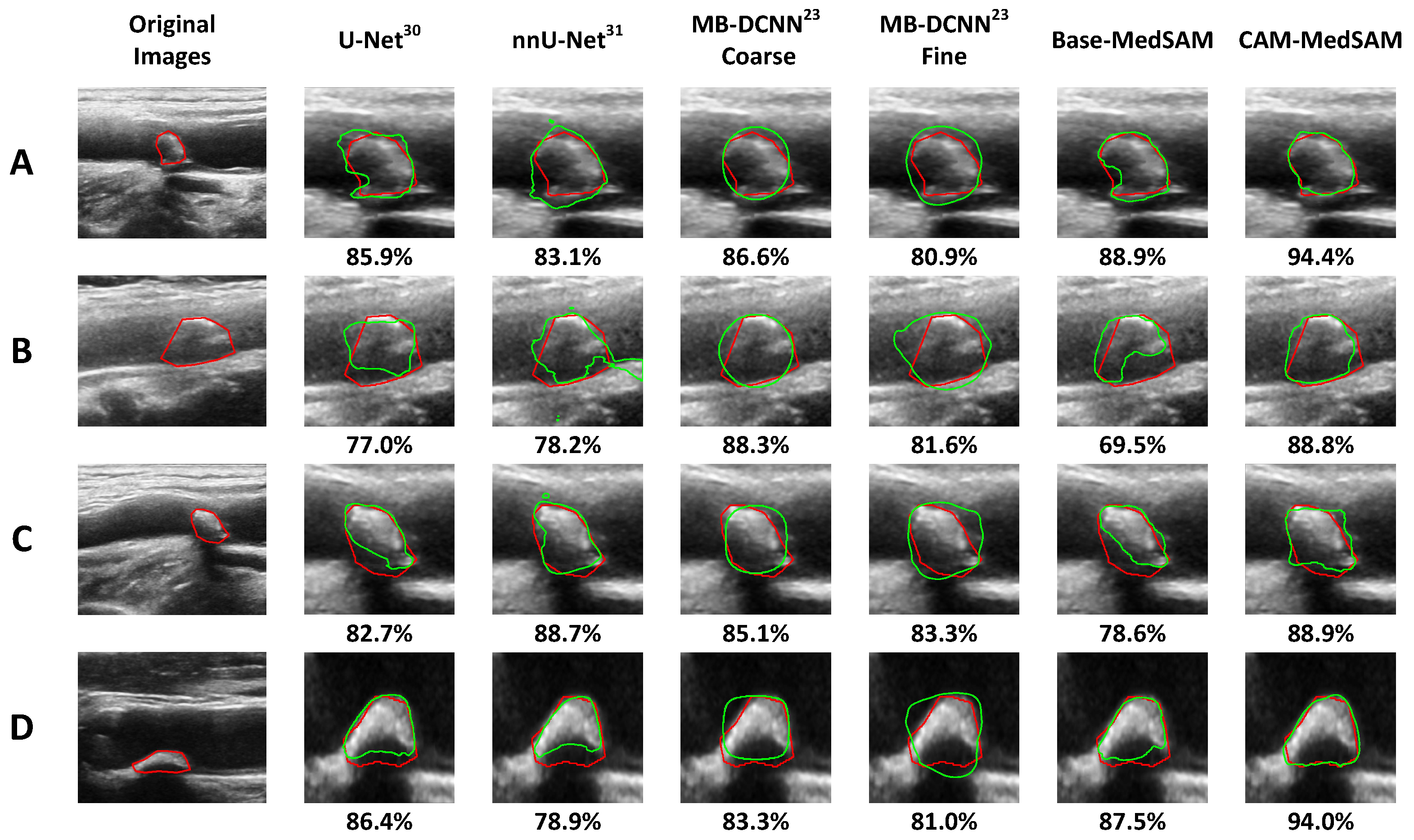 | CAM-MedSAM | 87.5 ± 4.2 | 85.4 ± 6.9 | 87.1 ± 5.4 | 86.6 ± 5.7 | |