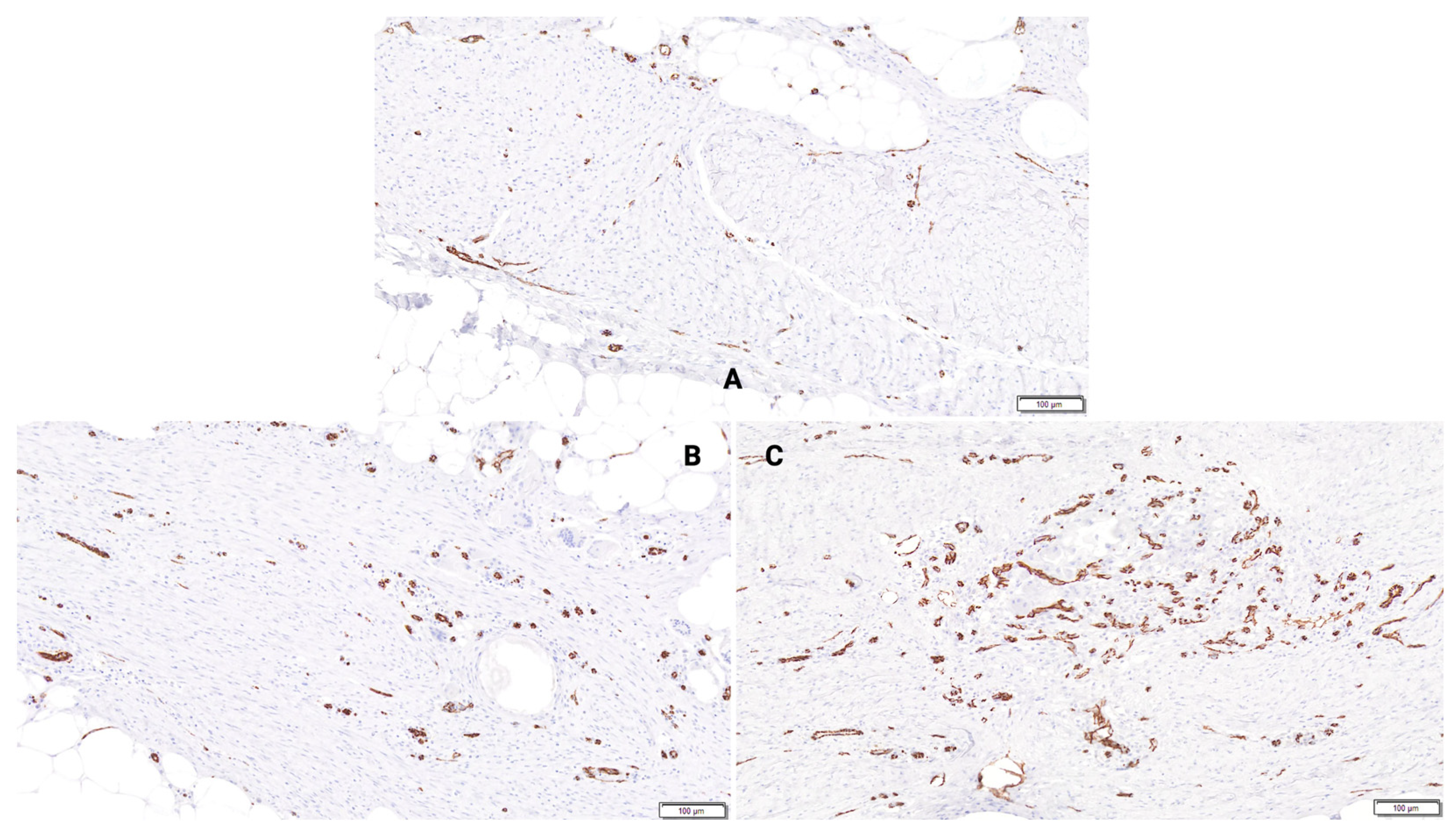 3.4. Immunohistochemistry Evaluation—Semi-Quantitative for CD31