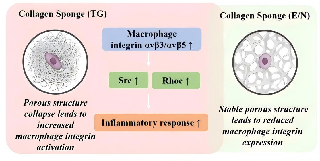 The Collapse of the Collagen Sponge Microstructure Triggers an Inflammatory Response of Macrophages via the Itgαvβ3/5-Src-RhoC-NF-κB Axis