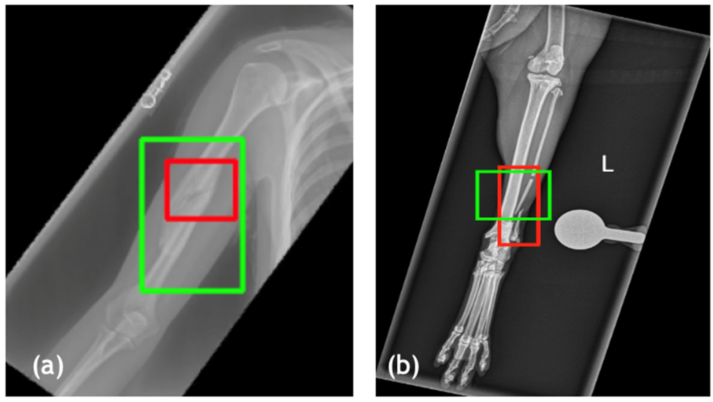 Future research should prioritize three areas. First, expanding annotated veterinary datasets, particularly including pre-fracture and post-treatment cases, would enable the model to detect subtler pathological changes and move beyond fracture detection towards risk stratification. Second, incorporating multi-view learning, where dorsopalmar, lateromedial, and oblique projections are processed in parallel and fused at the decision stage, may improve sensitivity for fractures that are partially obscured in single views. Third, extending the framework to multi-modality learning using CT and MRI volumes could enhance detection in complex or occult injury cases. Finally, integrating uncertainty estimates and explainable AI tools (e.g., Grad-CAM visualizations) would improve clinical interpretability and support real-world adoption. While receiver operating characteristic (ROC) analysis is commonly used in classification-based medical imaging studies, it was not included as a primary evaluation metric in this work. The proposed framework focuses on fracture localization using bounding box prediction, for which spatial metrics such as IoU, sensitivity, and specificity provide more clinically meaningful assessment. Moreover, evaluation was performed at the image (patch) level rather than at the case level, limiting the interpretability of ROC curves in this setting. Future work, particularly with larger case-level datasets and multi-view aggregation, will enable robust ROC and AUC analyses and facilitate direct comparison with alternative architectures.