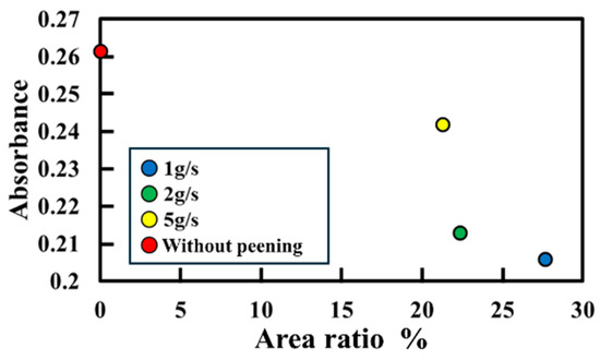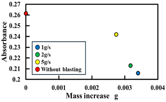 Figure 18 shows the relationship between absorbance and mass increase. When peening is applied, the absorbance increases as the mass increase became larger.