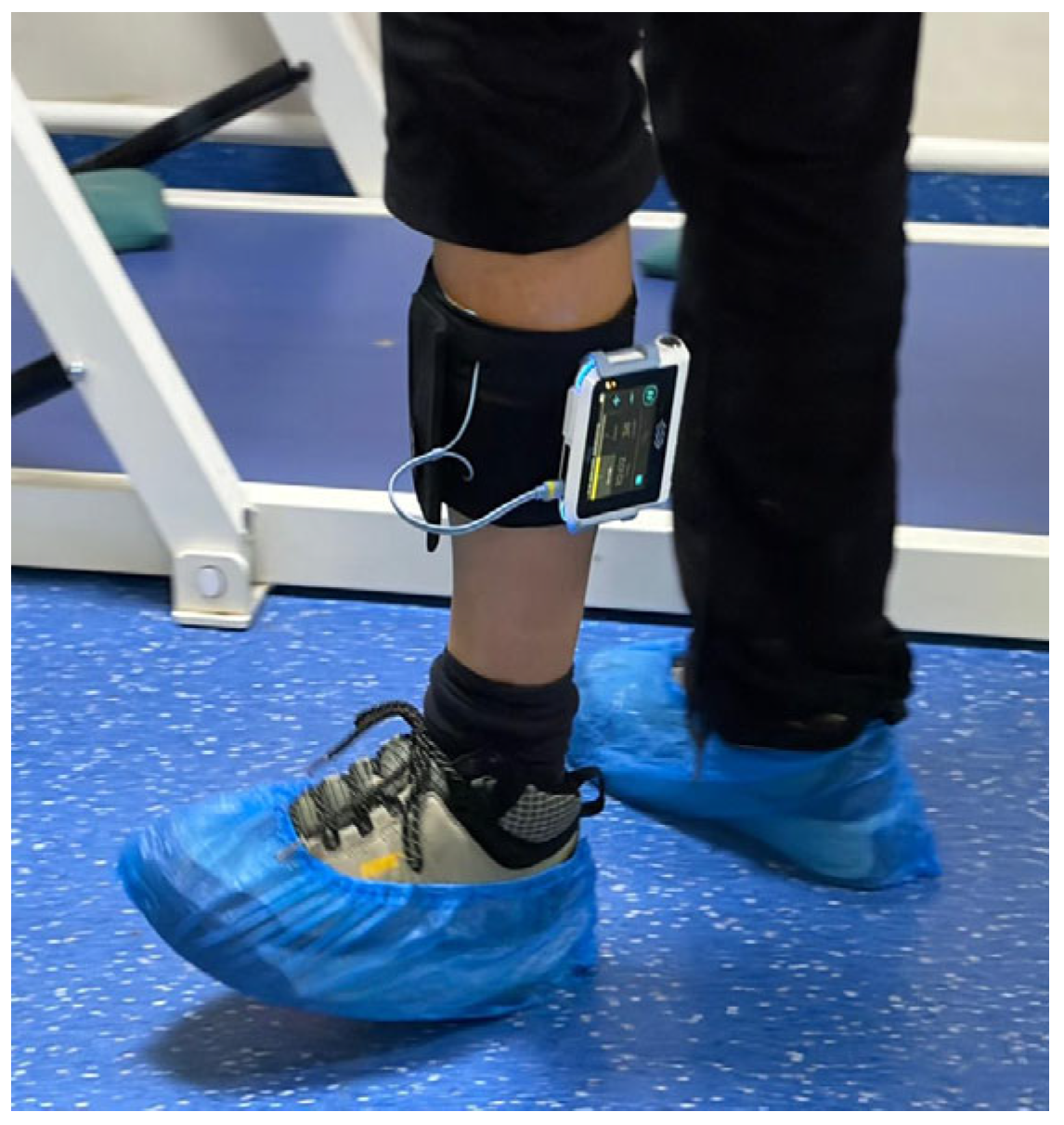 - David, R.; Billot, M.; Ojardias, E.; Parratte, B.; Roulaud, M.; Ounajim, A.; Louis, F.; Meklat, H.; Foucault, P.; Lombard, C.; et al. A 6-month home-based functional electrical stimulation program for foot drop in a post-stroke patient: Considerations on a time course analysis of walking performance. Int. J. Environ. Res. Public Health 2022, 19, 9204. [Google Scholar] [CrossRef]