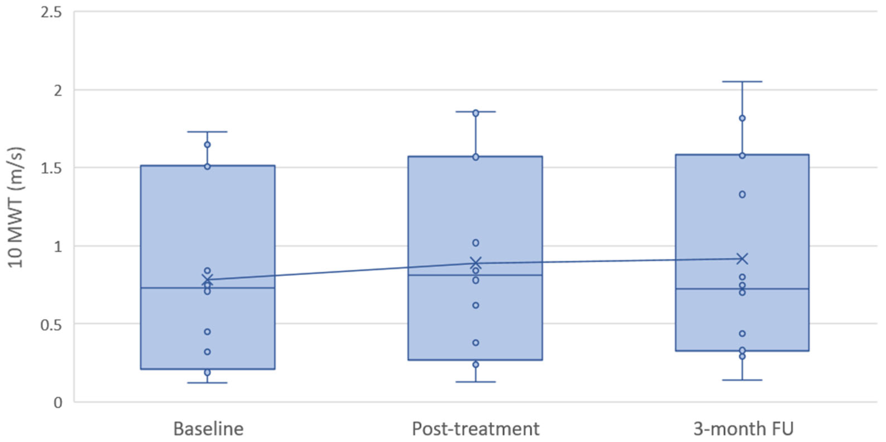 | 10 MWT (m/s) | Baseline-Post | 19.05 ± 13.77% | <0.001 | 1.03 | 57% |