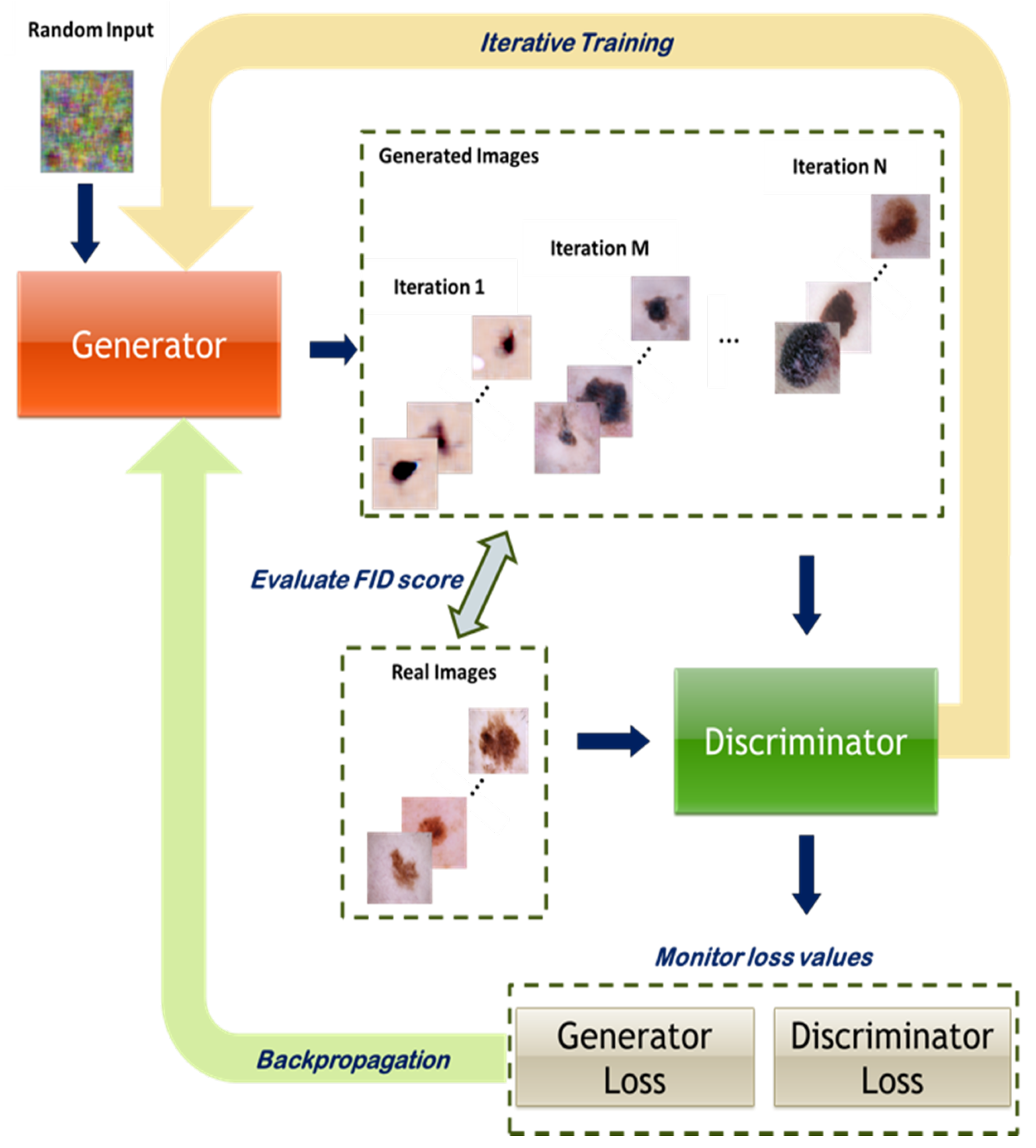 Figure 1. Iterative GAN training: the generator and discriminator undergo concurrent adversarial training.