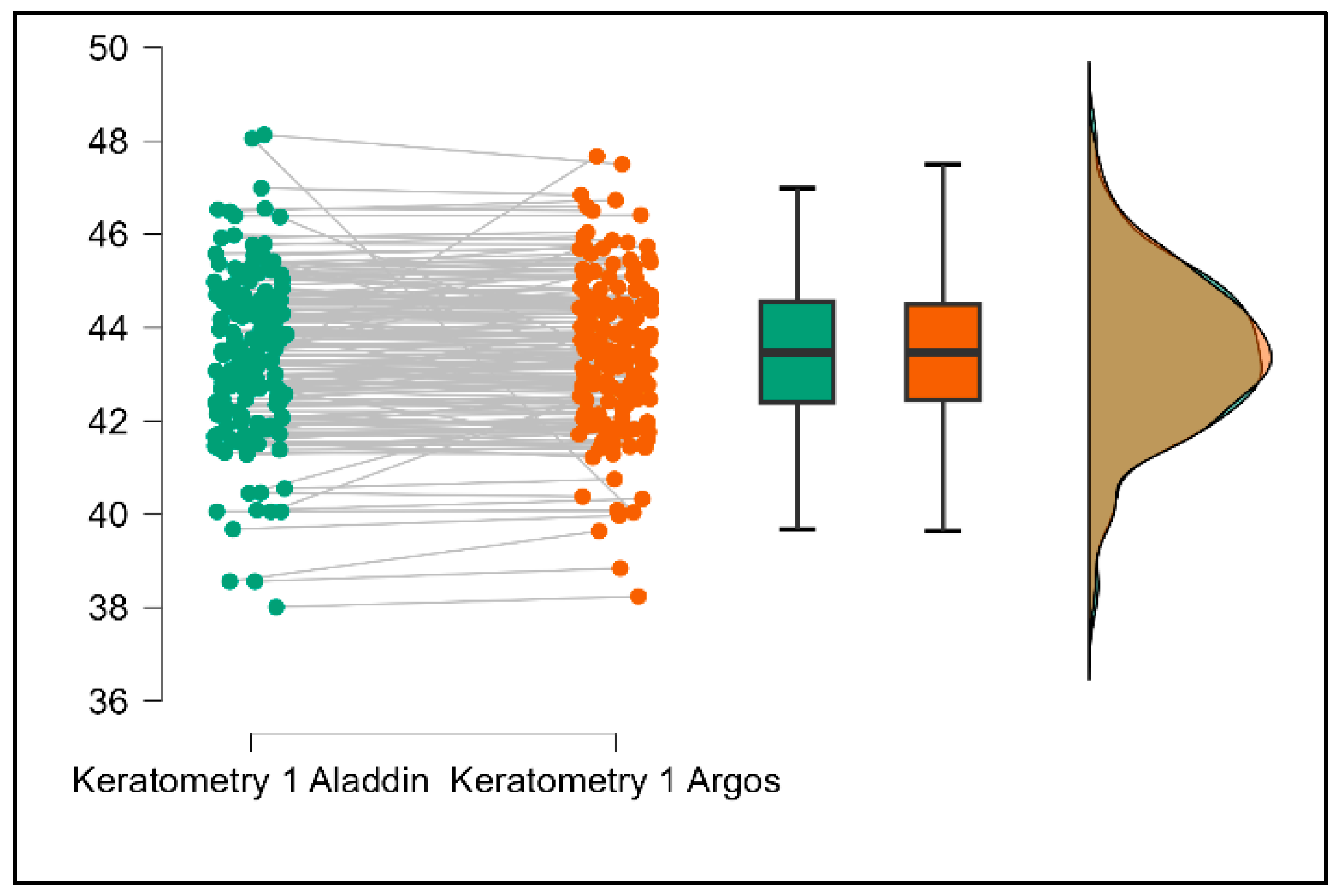 Figure 7. Conversely, the astigmatism axis (degrees) demonstrated no significant difference between the Argos and Aladdin devices (