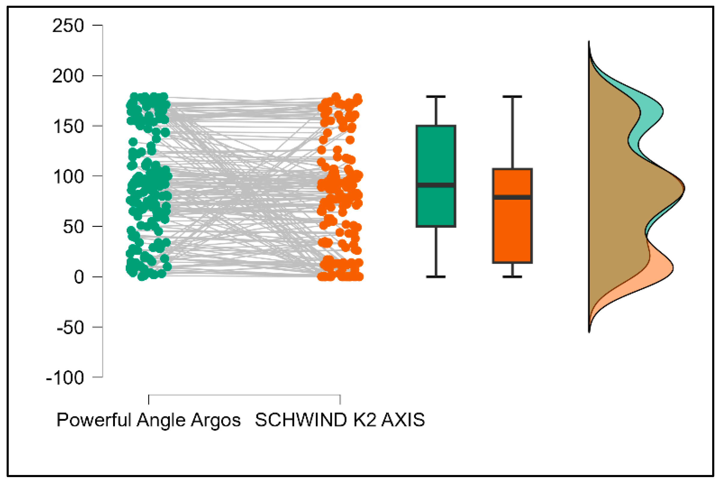 Figure 13). The average astigmatism axis (degrees) values are significantly lower in the case of Schwind compared to Argos (Mann–Whitney U test,