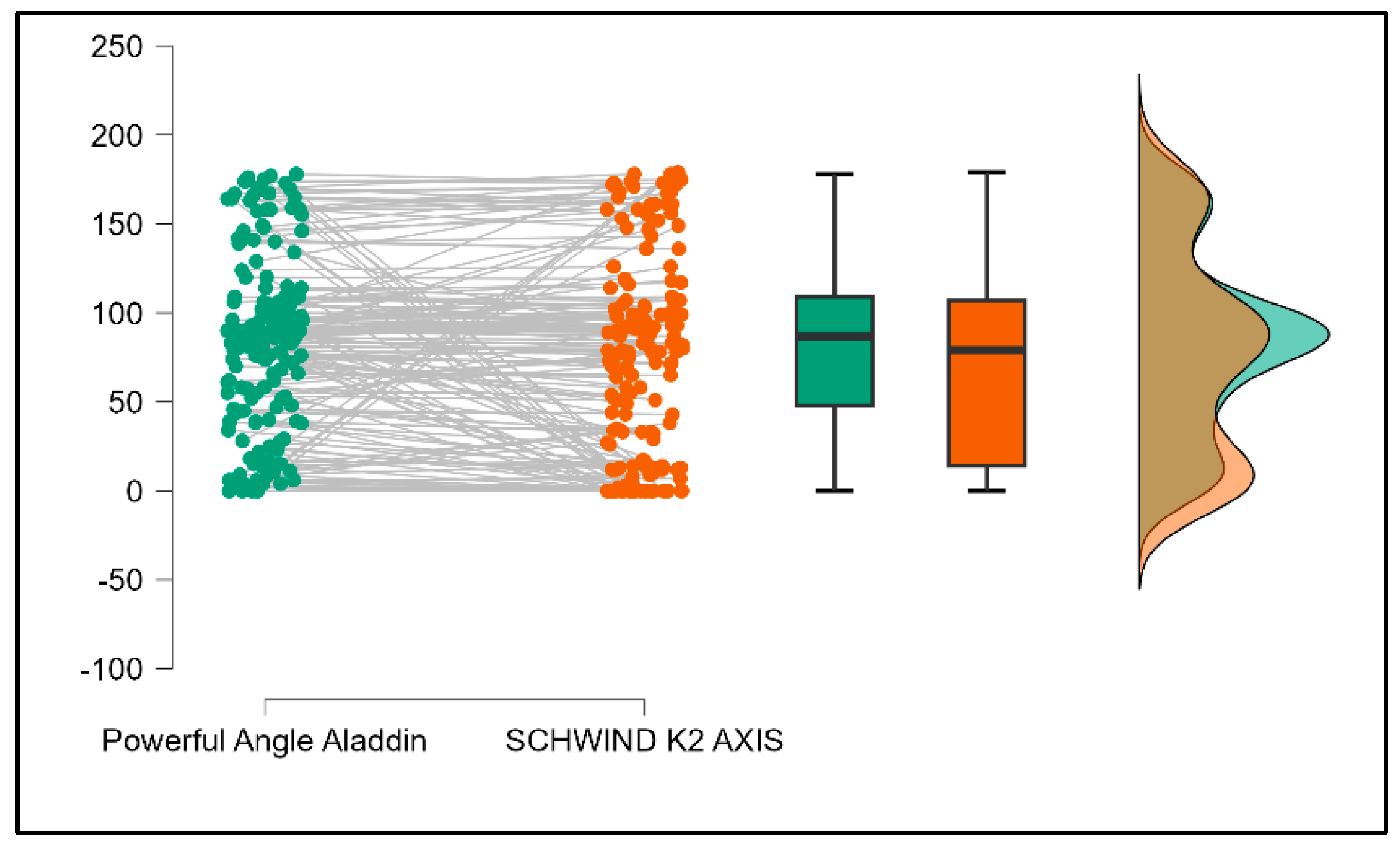 Figure 19). The average astigmatism axis (degrees) values are significantly lower in the case of Schwind compared to Alladin (Mann–Whitney U test,