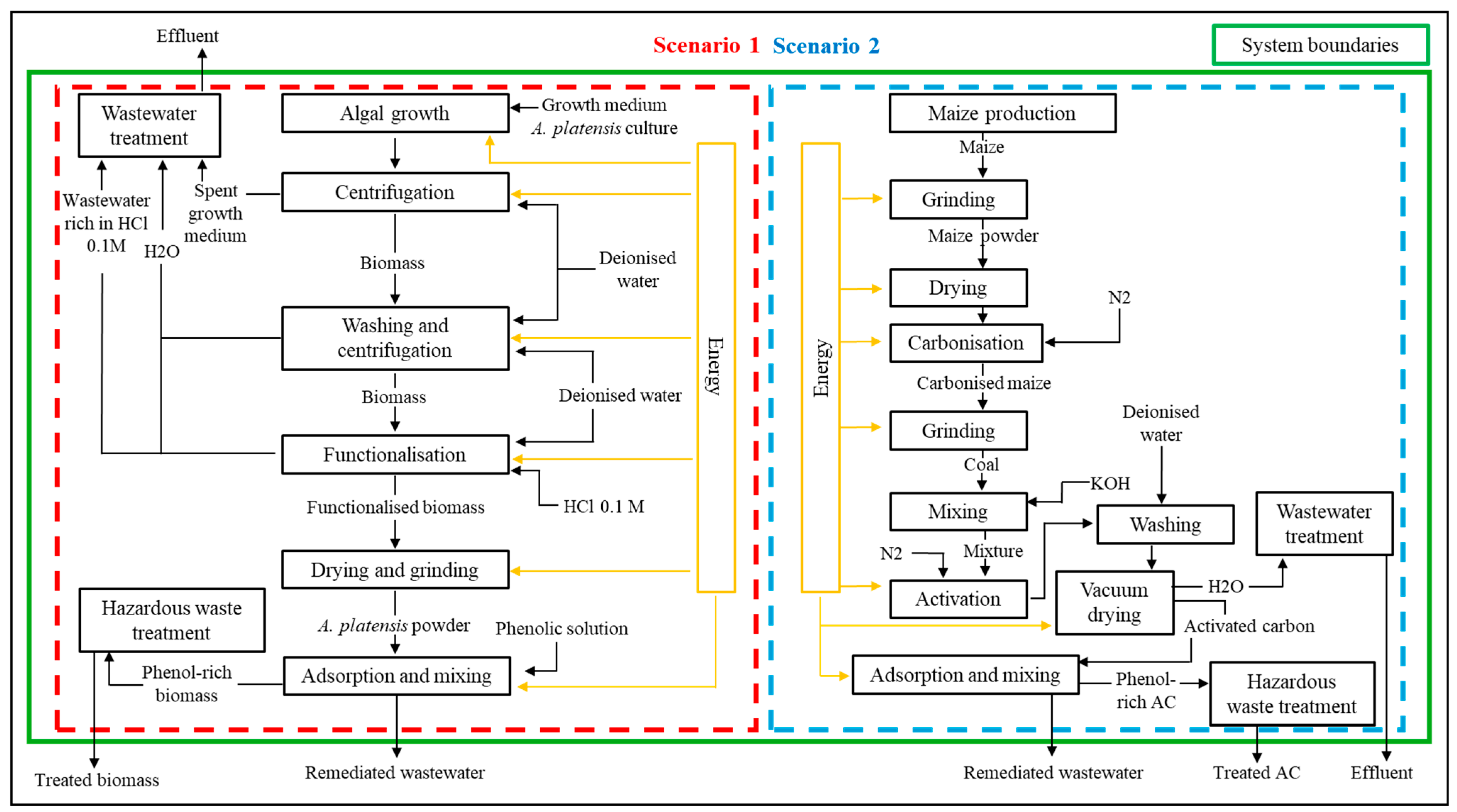 | Energy | 0.14 | KWh | A. platensis biomass | 1 | g |