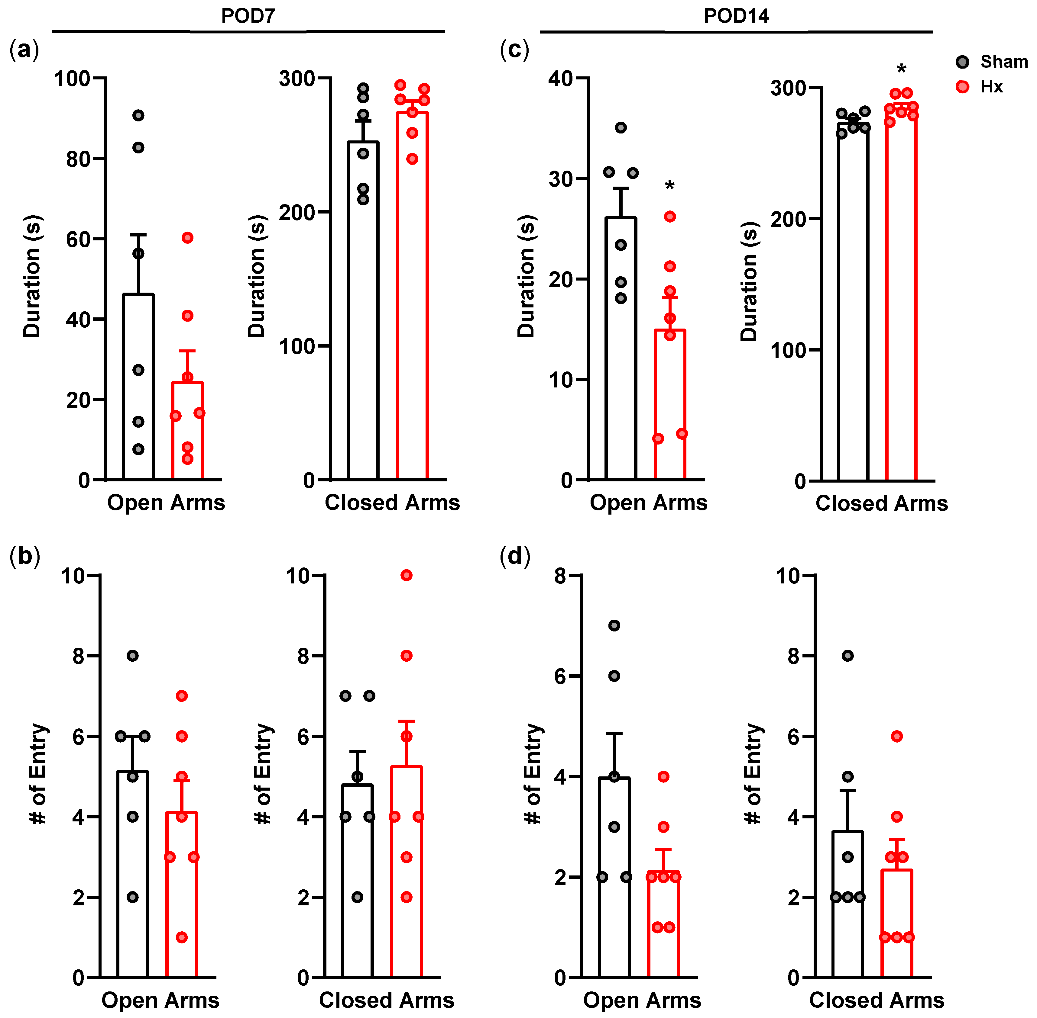 Figure 8). Although some experiments were conducted with relatively modest sample sizes, the Hx model produces robust and reproducible phenotypic changes following a well-defined surgical manipulation, with consistent effects observed across multiple behavioral and neuroendocrine assessments within this experimental framework.