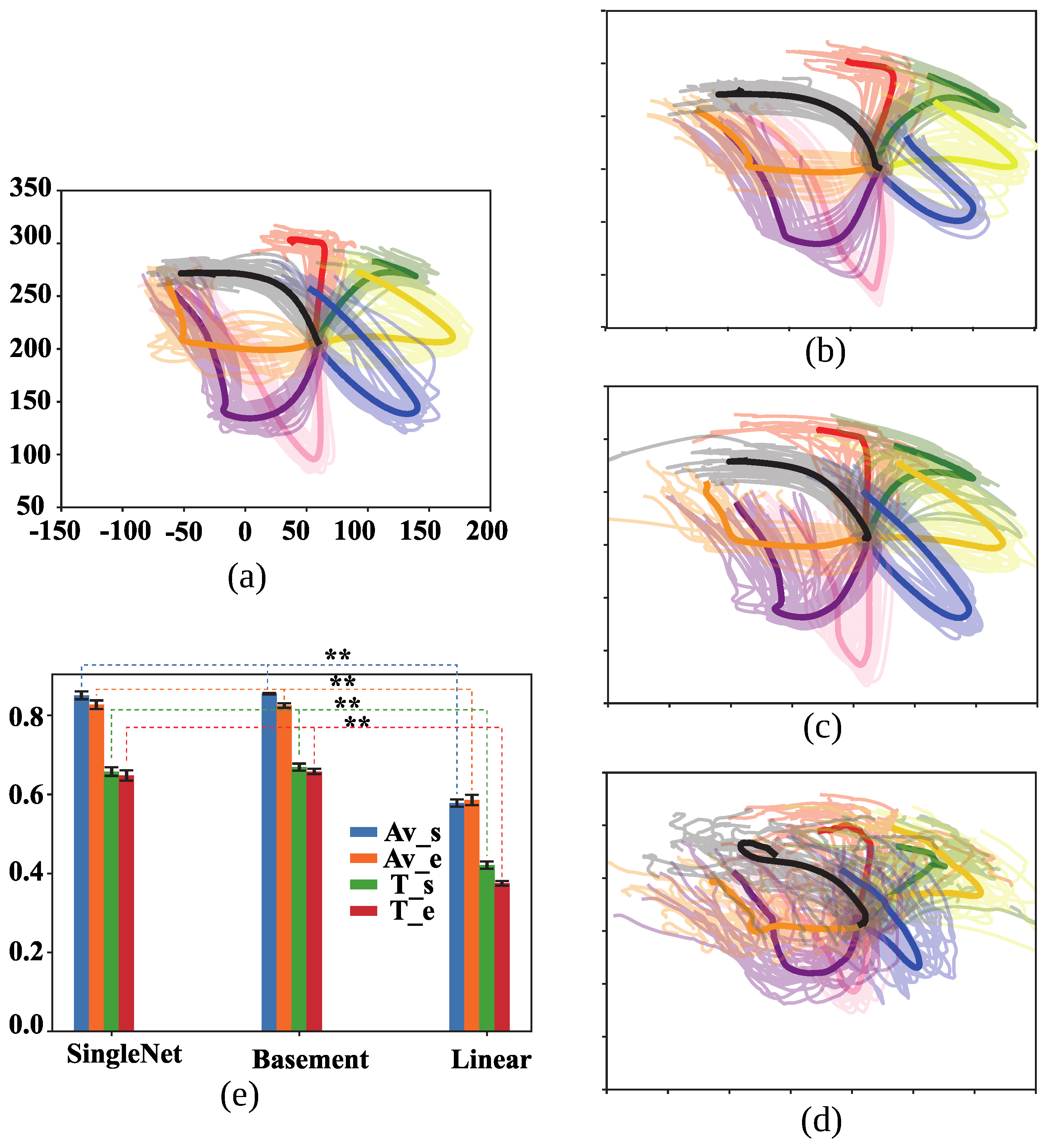 - Pandarinath, C.; O’Shea, D.J.; Collins, J.; Jozefowicz, R.; Stavisky, S.D.; Kao, J.C.; Trautmann, E.M.; Kaufman, M.T.; Ryu, S.I.; Hochberg, L.R.; et al. Inferring single-trial neural population dynamics using sequential auto-encoders. Nat. Methods 2018, 15, 805–815. [Google Scholar] [CrossRef]