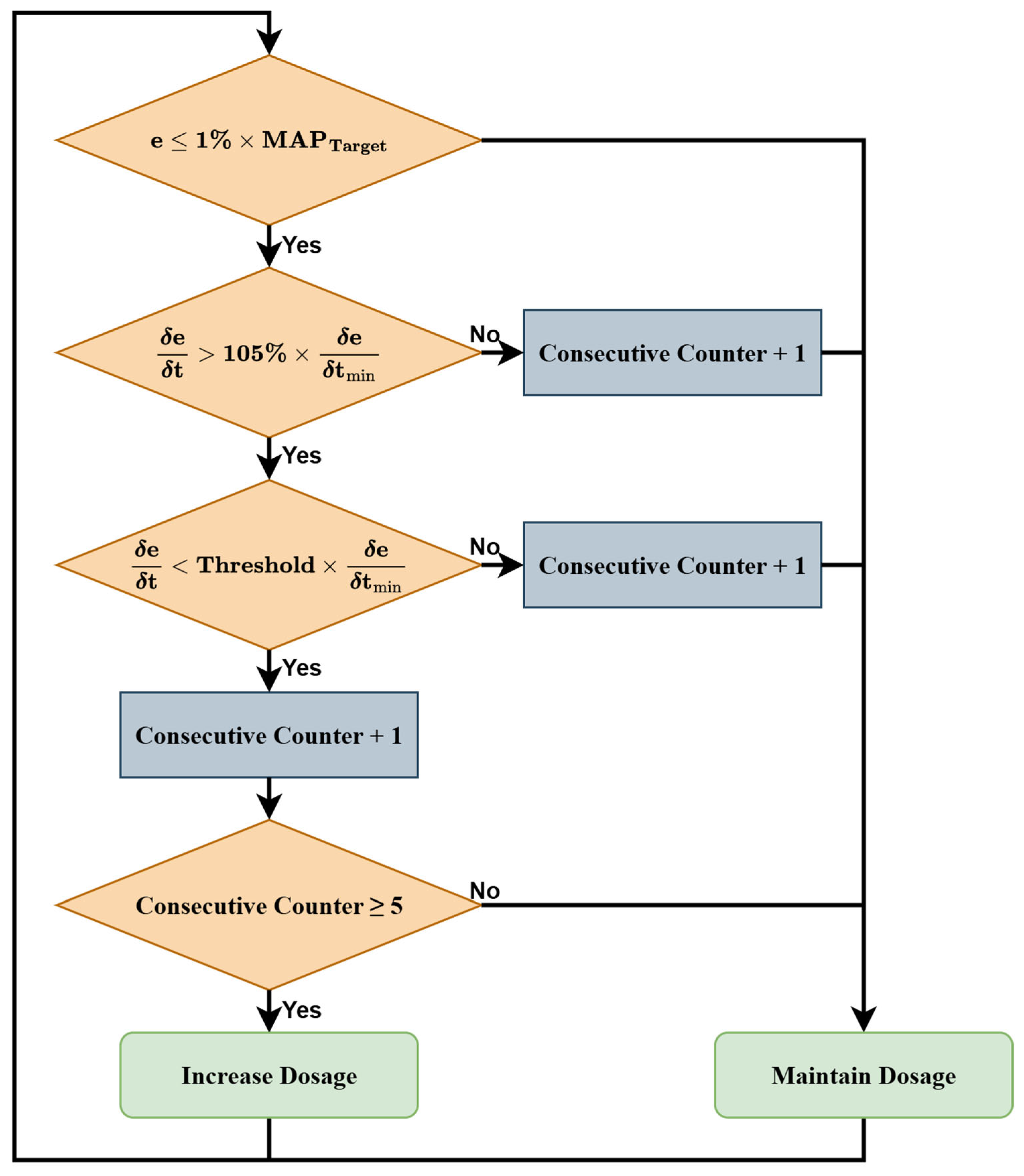 Using this understanding of the system, we built a patient-following controller (PFC) that evaluated the trajectory of the signal error using a conditional rule set to determine the appropriate time to increase the dose (