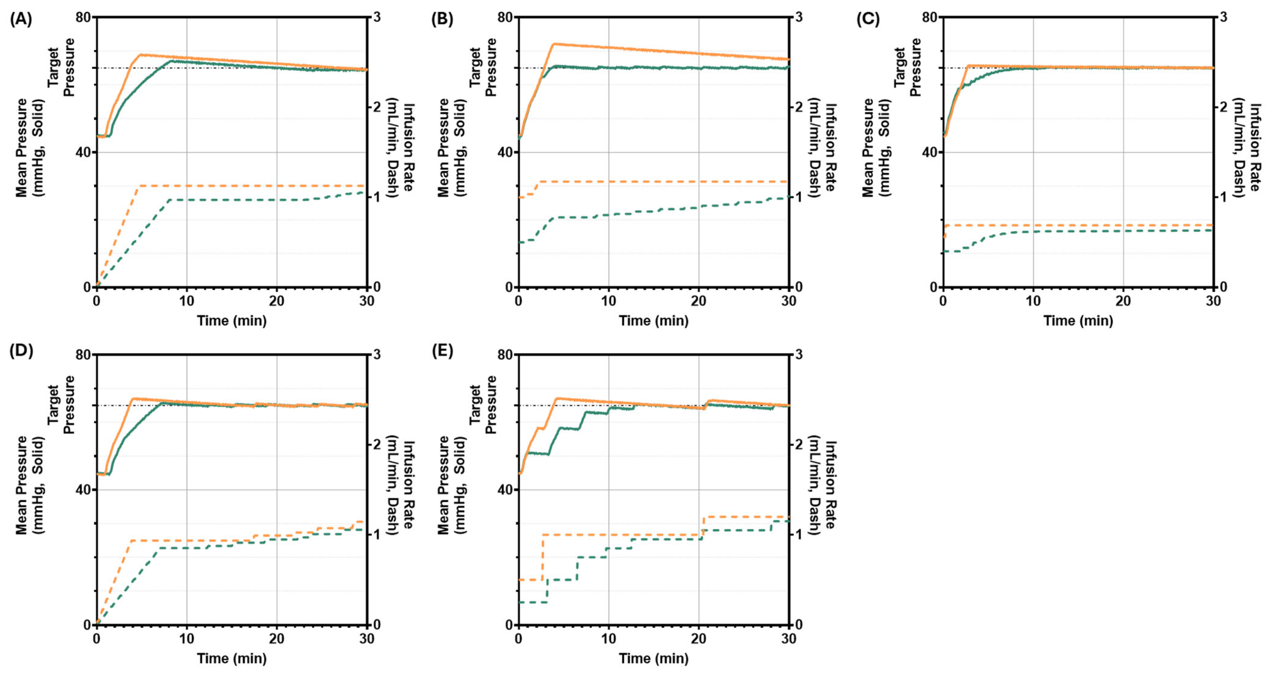 28] to establish gain stability and responsiveness. Final adjustments and performance verification were performed on the HATRC platform, where the controller was evaluated under a range of hemorrhagic shock conditions to ensure consistent target tracking and minimal overshoot.