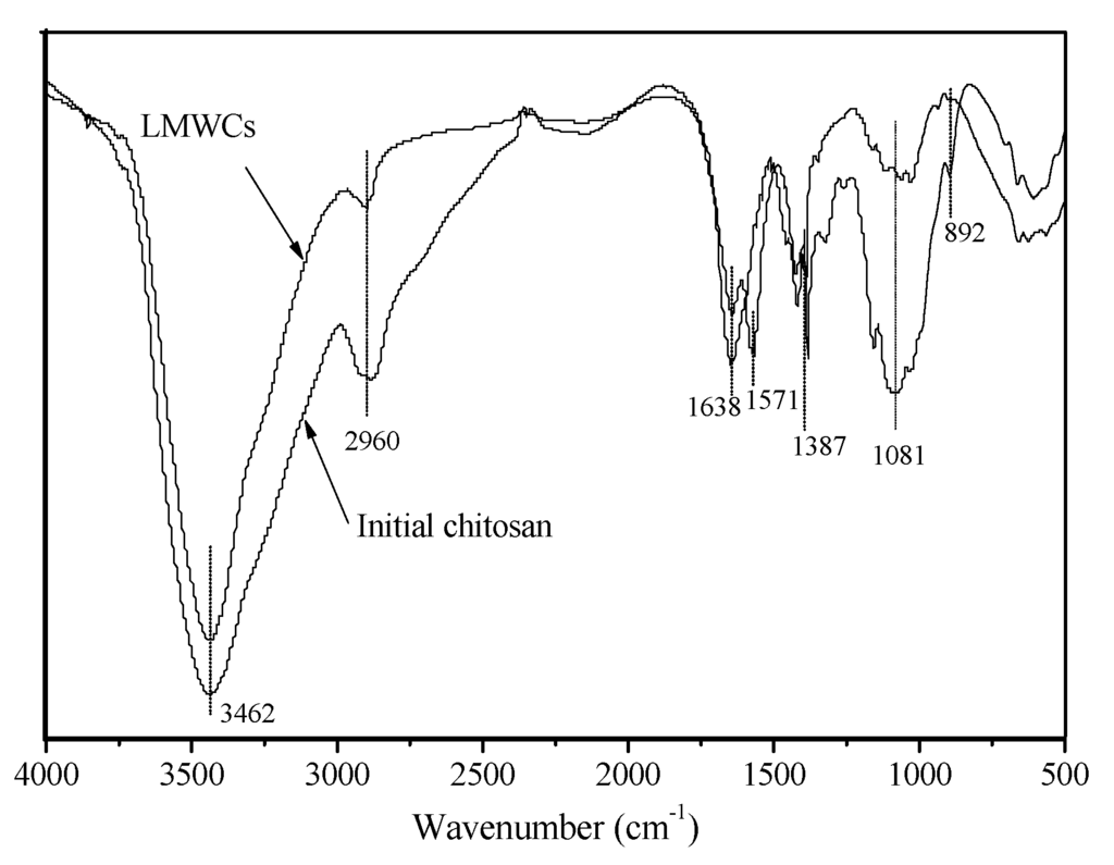 - Nah, J.W.; Jang, M.K. Spectroscopic characterization and preparation of low molecular, water-soluble chitosan with free-amine group by novel method. J. Polym. Sci. Part A Polym. Chem. 2002, 40, 3796–3803. [Google Scholar] [CrossRef]