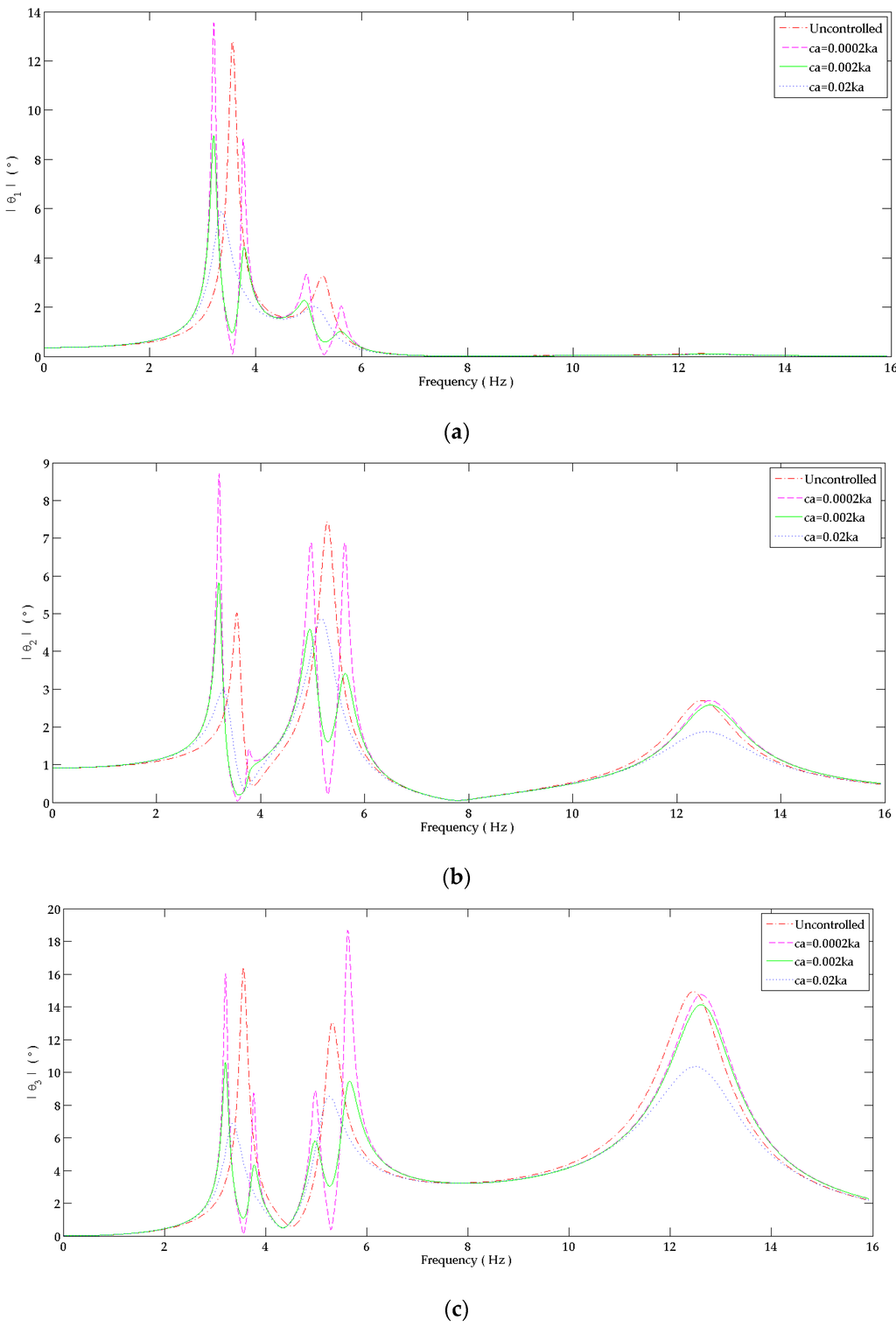 | Angular displacement magnitude of the controlled and uncontrolled systems (rd) | |