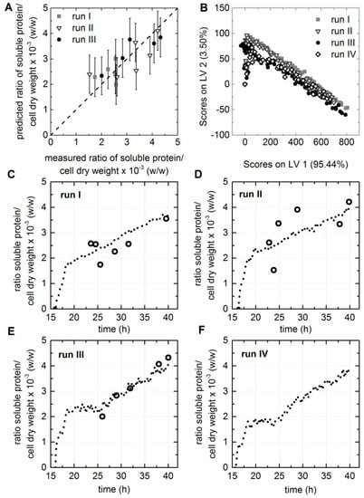 - Luchner, M.; Striedner, G.; Cserjan-Puschmann, M.; Strobl, F.; Bayer, K. Online prediction of product titer and solubility of recombinant proteins in Escherichia coli fed-batch cultivations. J. Chem. Technol. Biotechnol. 2015, 90, 283–290. [Google Scholar] [CrossRef]